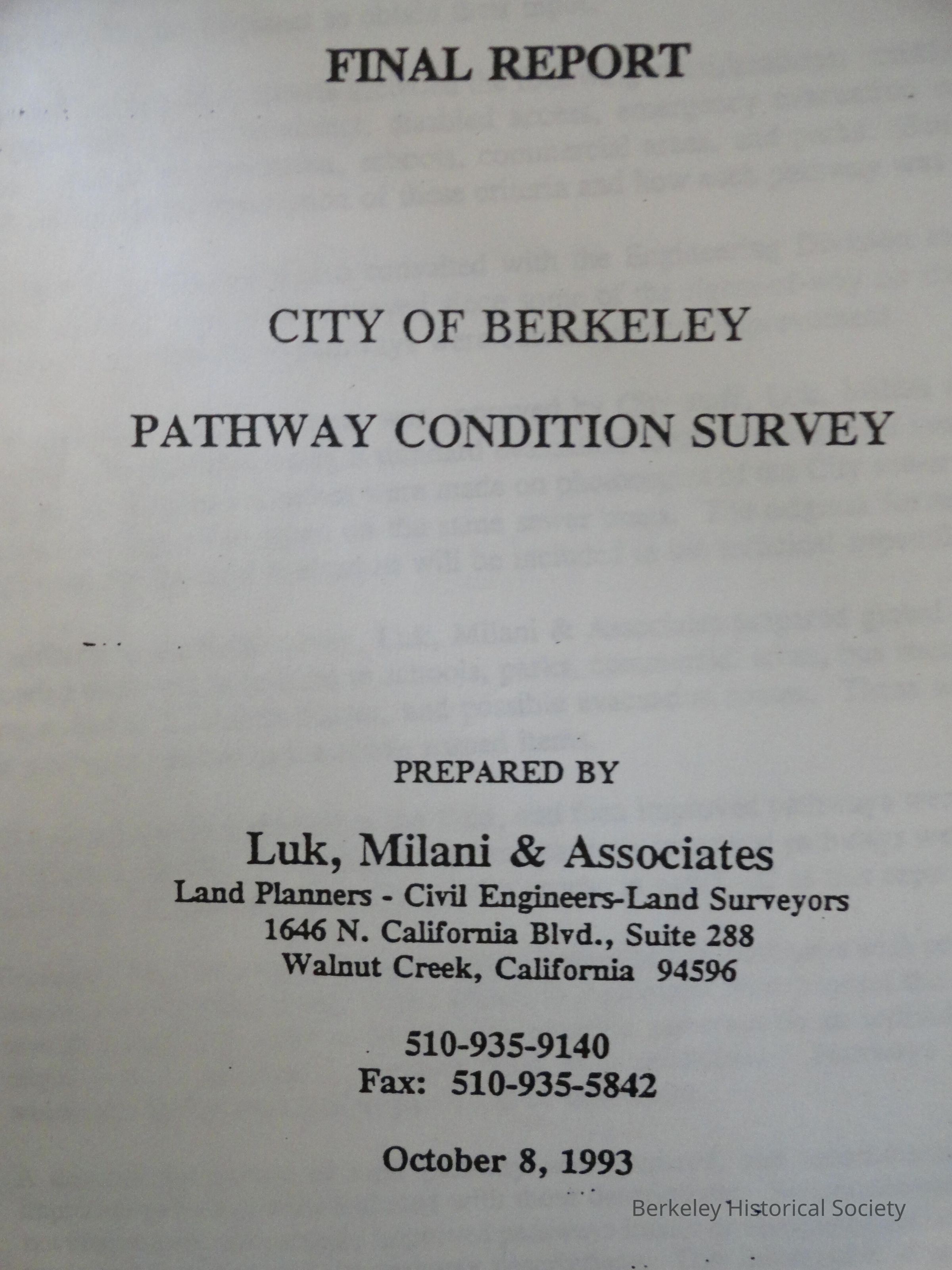 Contains board minutes, newsletters, publicity materials; 'History of BWPA from 1997 to 2005" by Pat DeVito; "The Public Pathways of Berkeley, California" by Christy Camp, 1998); "City of Berkeley pathway condition survey final report" by Luk, Milani & Associates, 1993; City of Berkeley master plan (1977) and general plan 2002); research materials: history of La Loma steps; Indian rock legacy, and misc photocopies from Mason-McDuffie archives.Lexicon