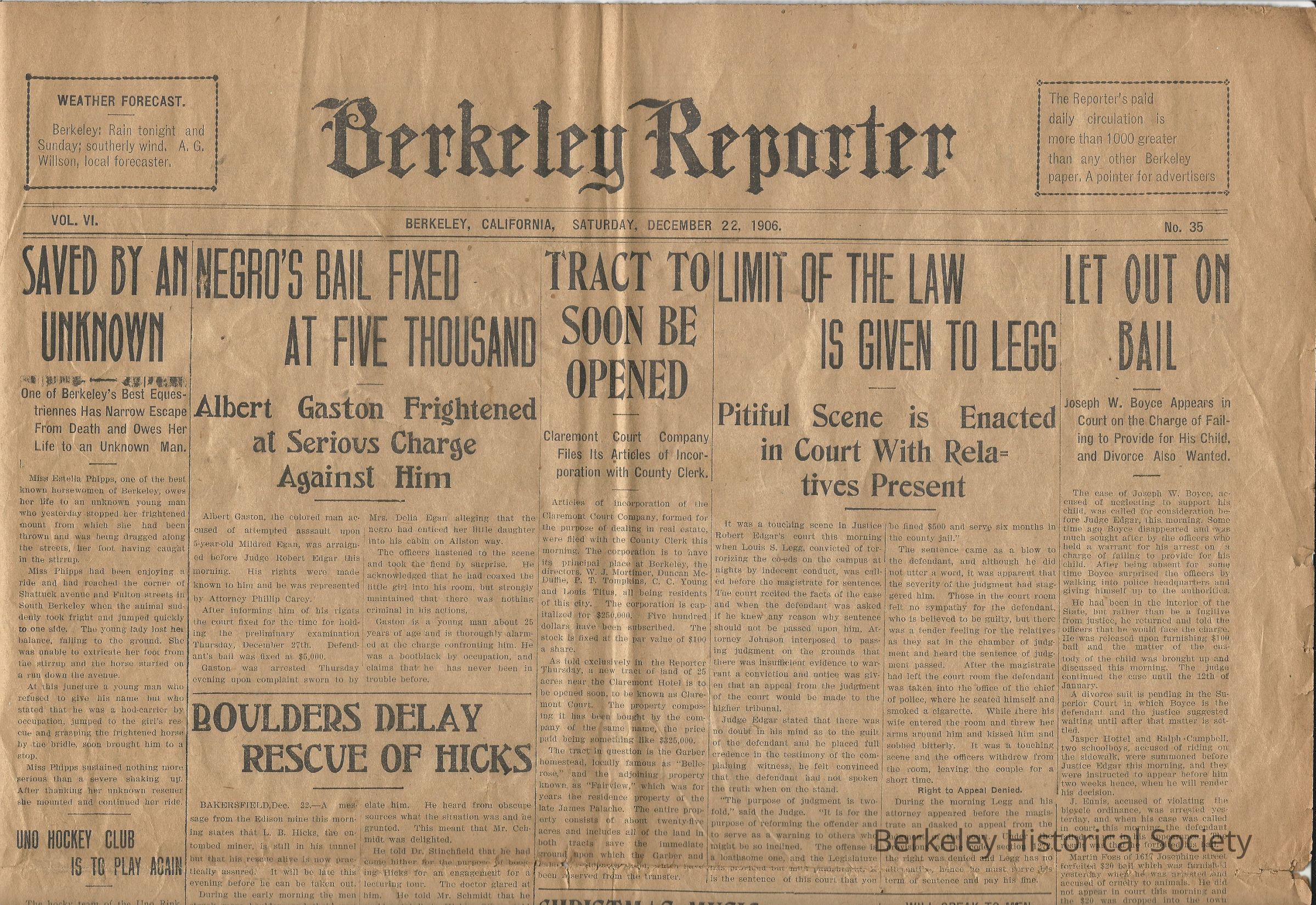 BHS has: Dec. 22. 1906; April 20, 1906, Dec. 27, 1908. NOTE: shelved in Archives oversize B
