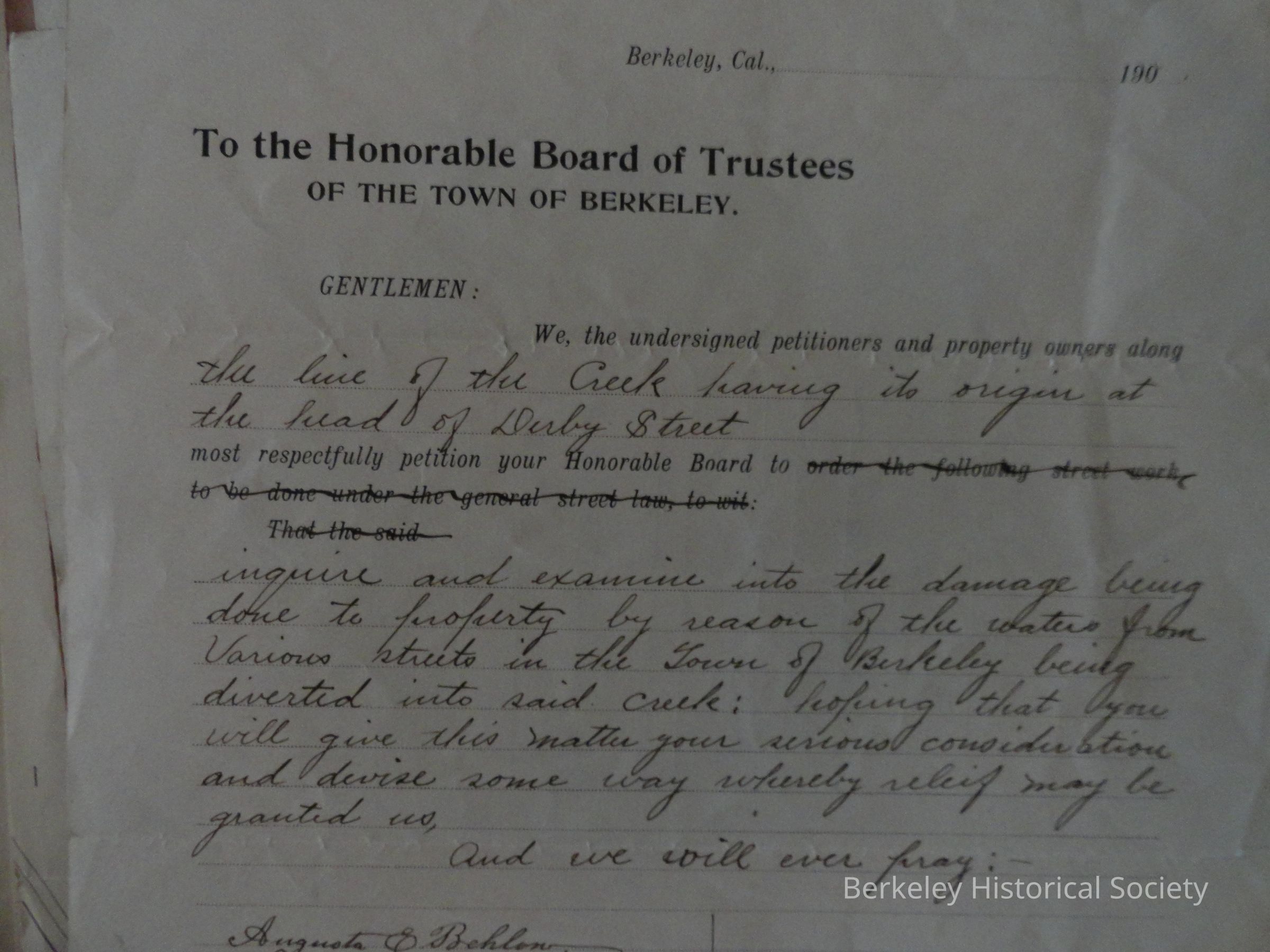Berkeley Street Department records, 1890-1910Entry/Object ID