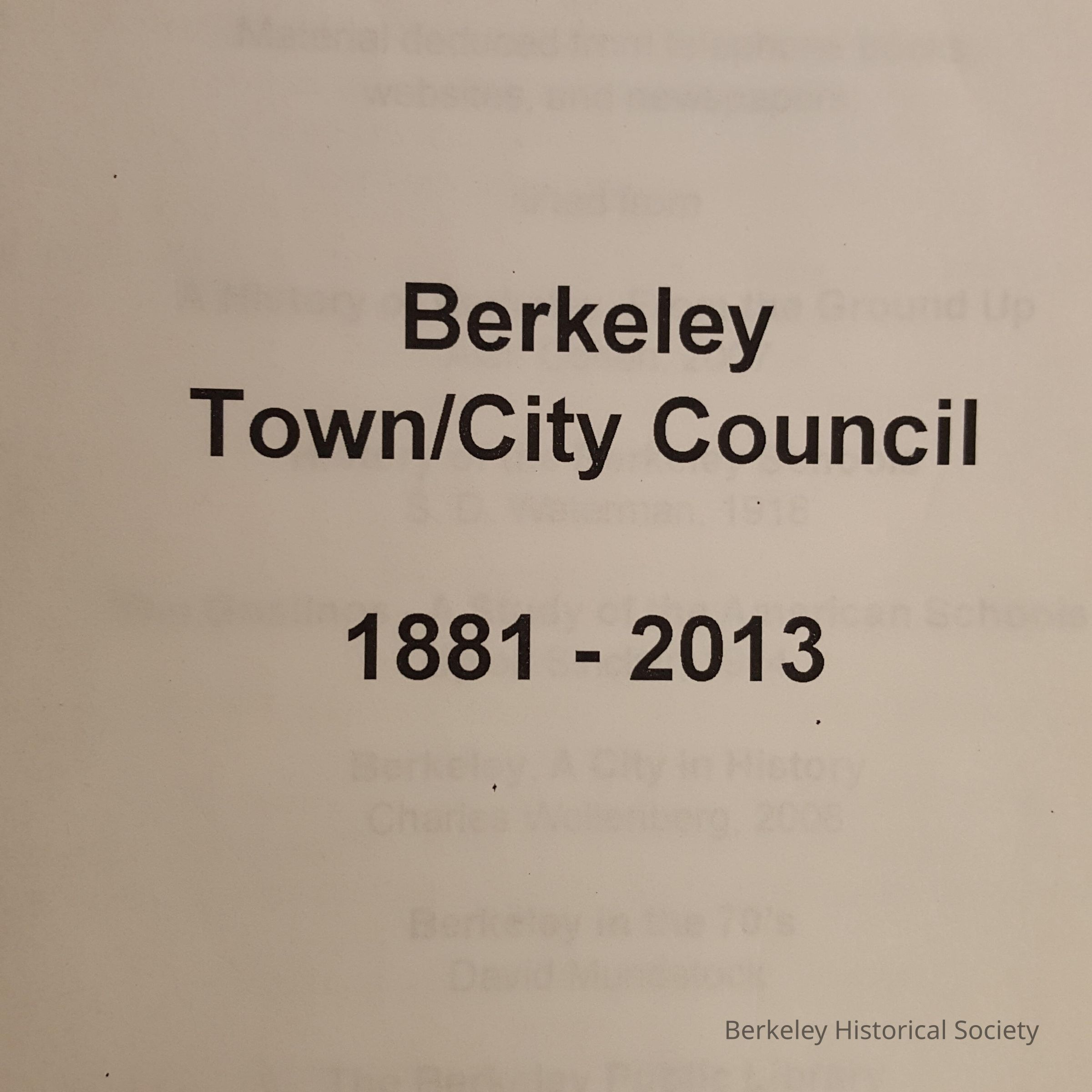 Compilation of information on (v.1) Berkeley Town/City Council, 1881-2013, and (v.2) Berkeley School Board 1878-2013, with (v.3) name index.