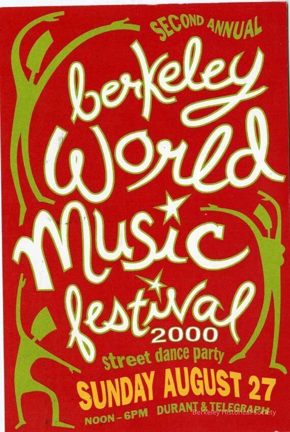 Postcard advertising the second annual Berkeley Music Festival Street Dance Party that was held on August 27, 2000. Stamp and postmark present.