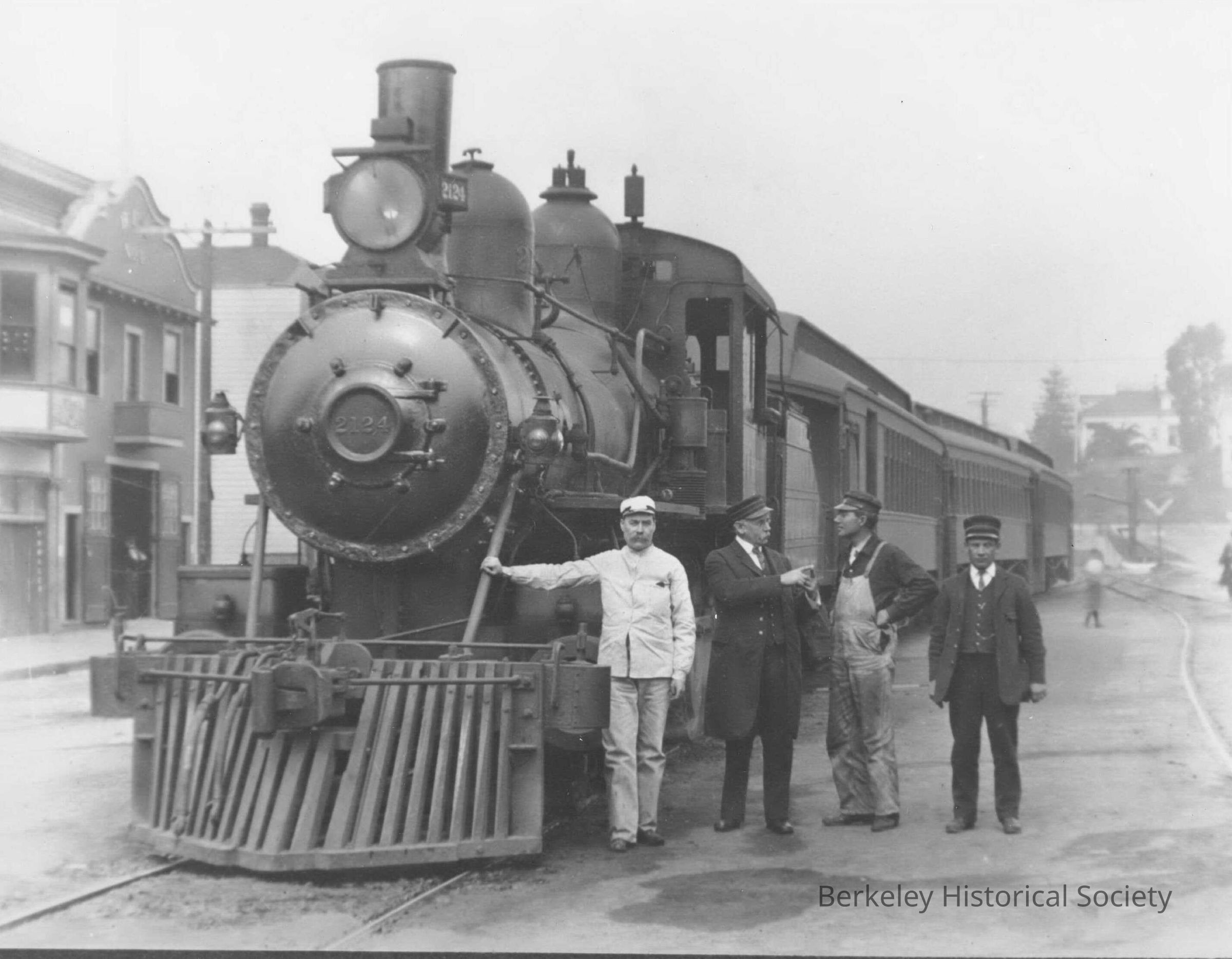 S,P Steam train at Berryman Station. Three or four crew members shown next to engine 327-190-0021
