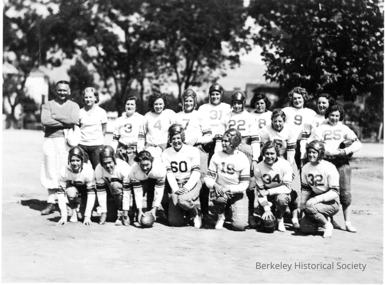Berkeley High School girls' football team and their coach at Milvia and ChanningOther Names and Numbers