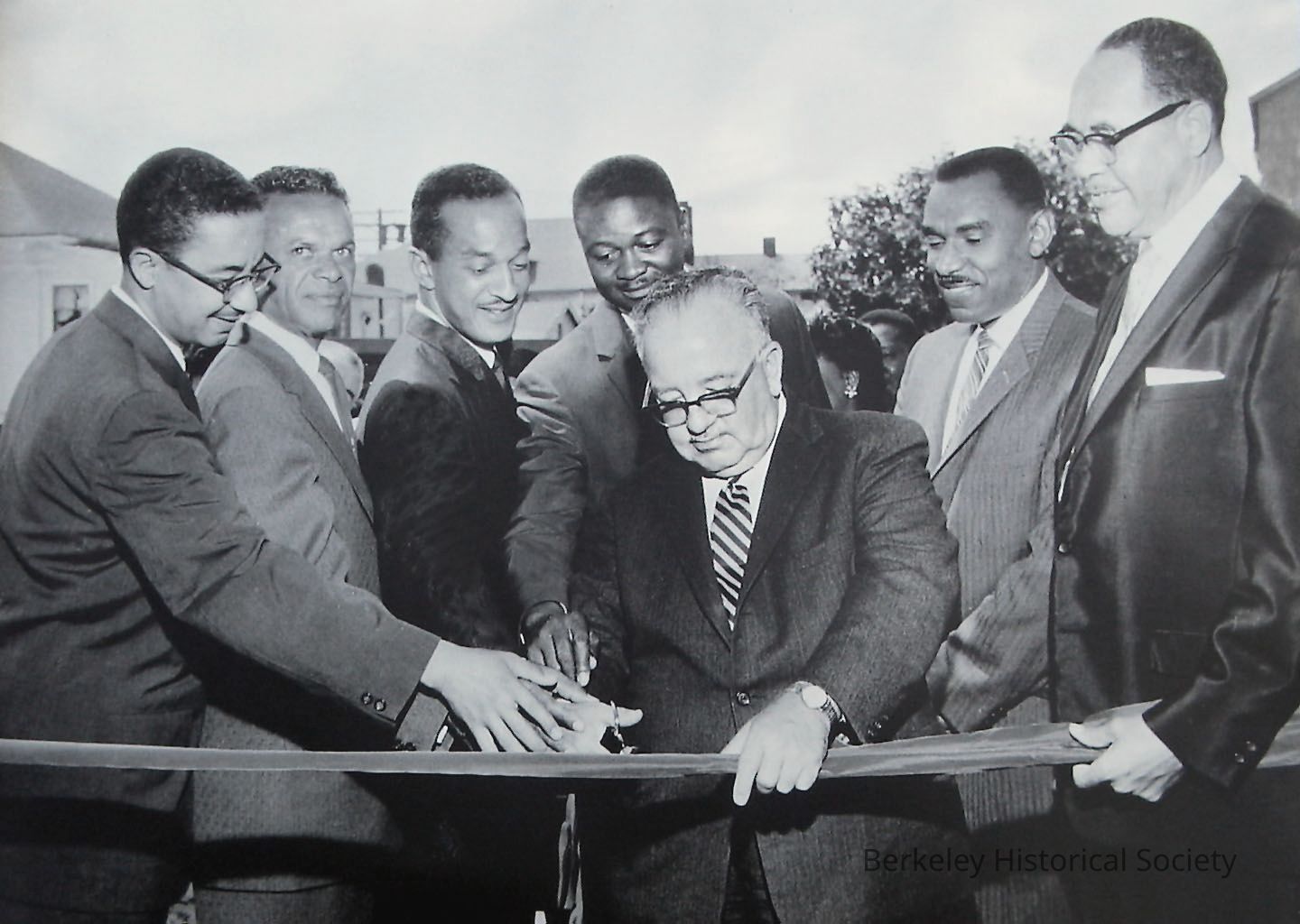 Ribbon cutting group. Identification uincertain.