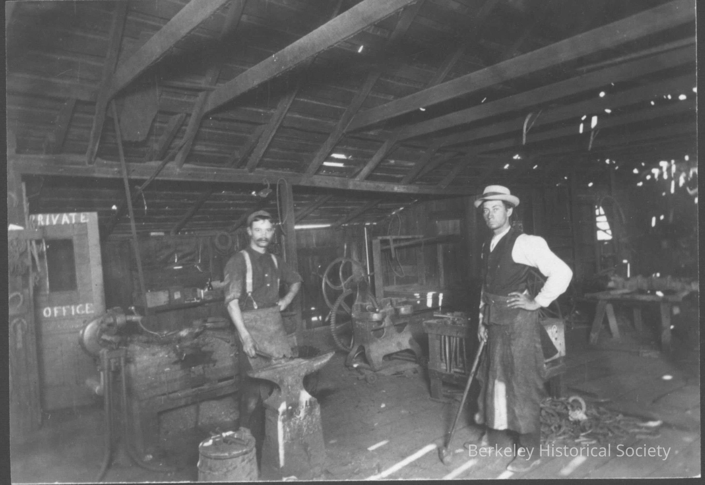 2 men standing inside blacksmith shop, probably Ocean View