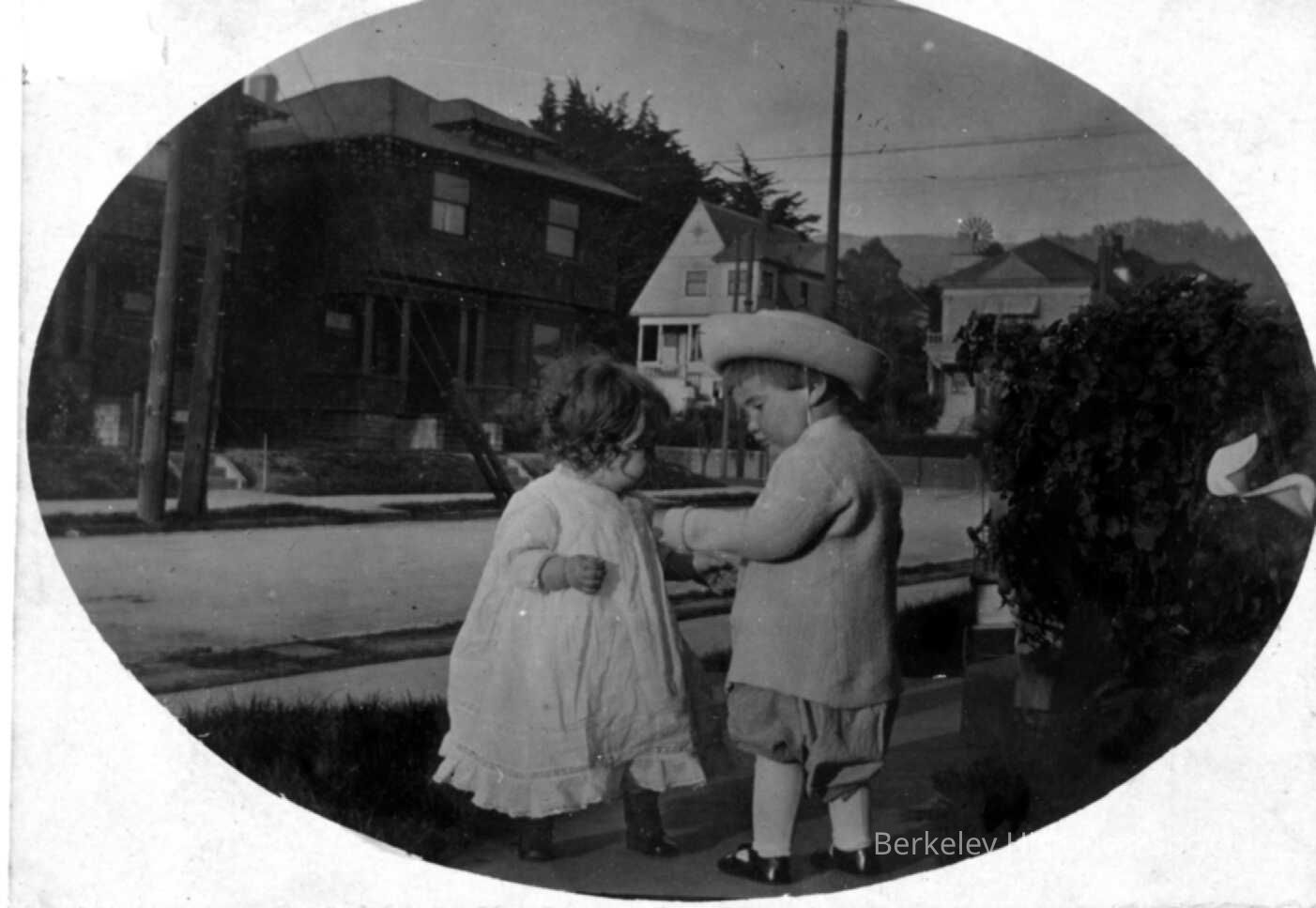 Branstead children, about the age of two, standing on sidewalk at 2040 Cedar St. at Shattuck Avenue, 1911Made/Created