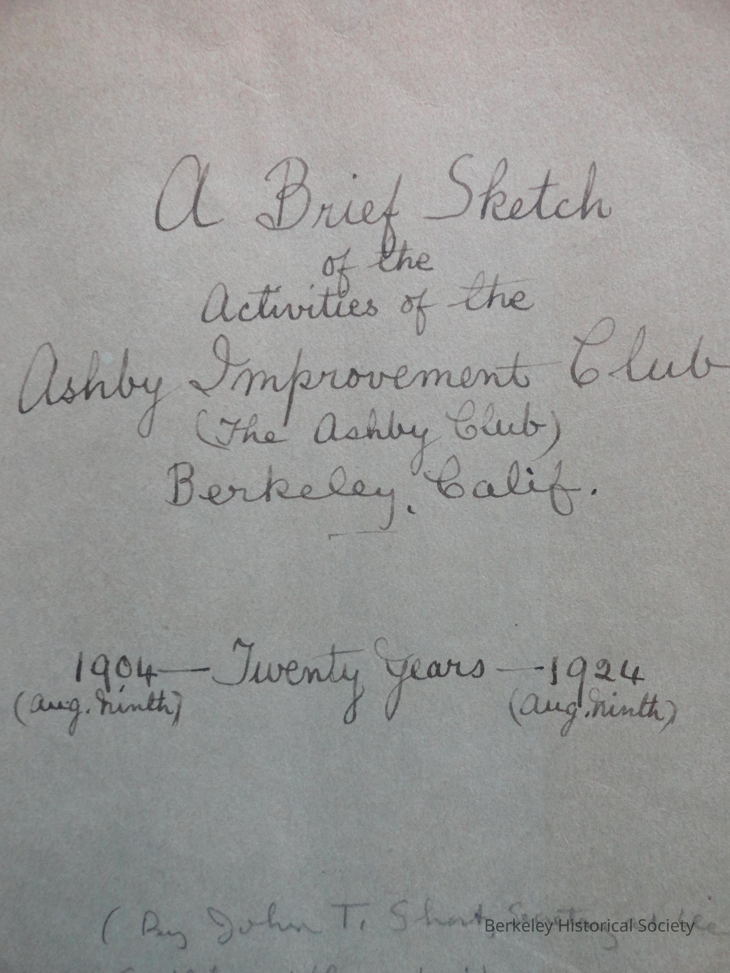 Covers 20 years of the existence of the club, 1904-1924, formed "to promote the best interests of south-eastern Berkeley."