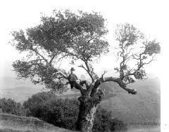 Post sitting on branch of an oak tree in Strawberry Canyon