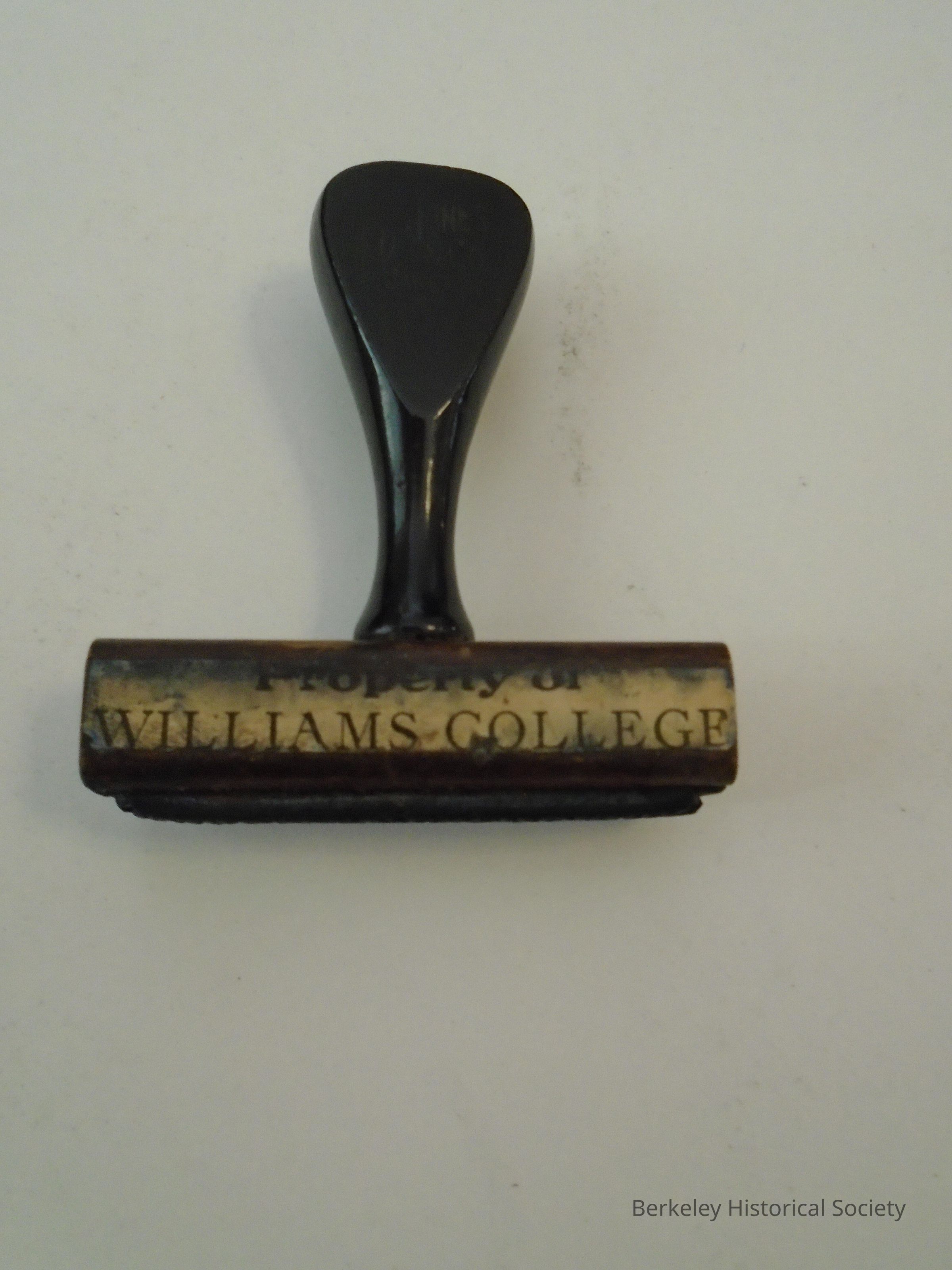 Wood and rubber hand stamp : "Property of WILLIAMS COLLEGE Berkeley California". Found in the Spring mansion (built in 1912 which became Williams College about 1920, for 5 decades.) See also boxes of archives records.Lexicon