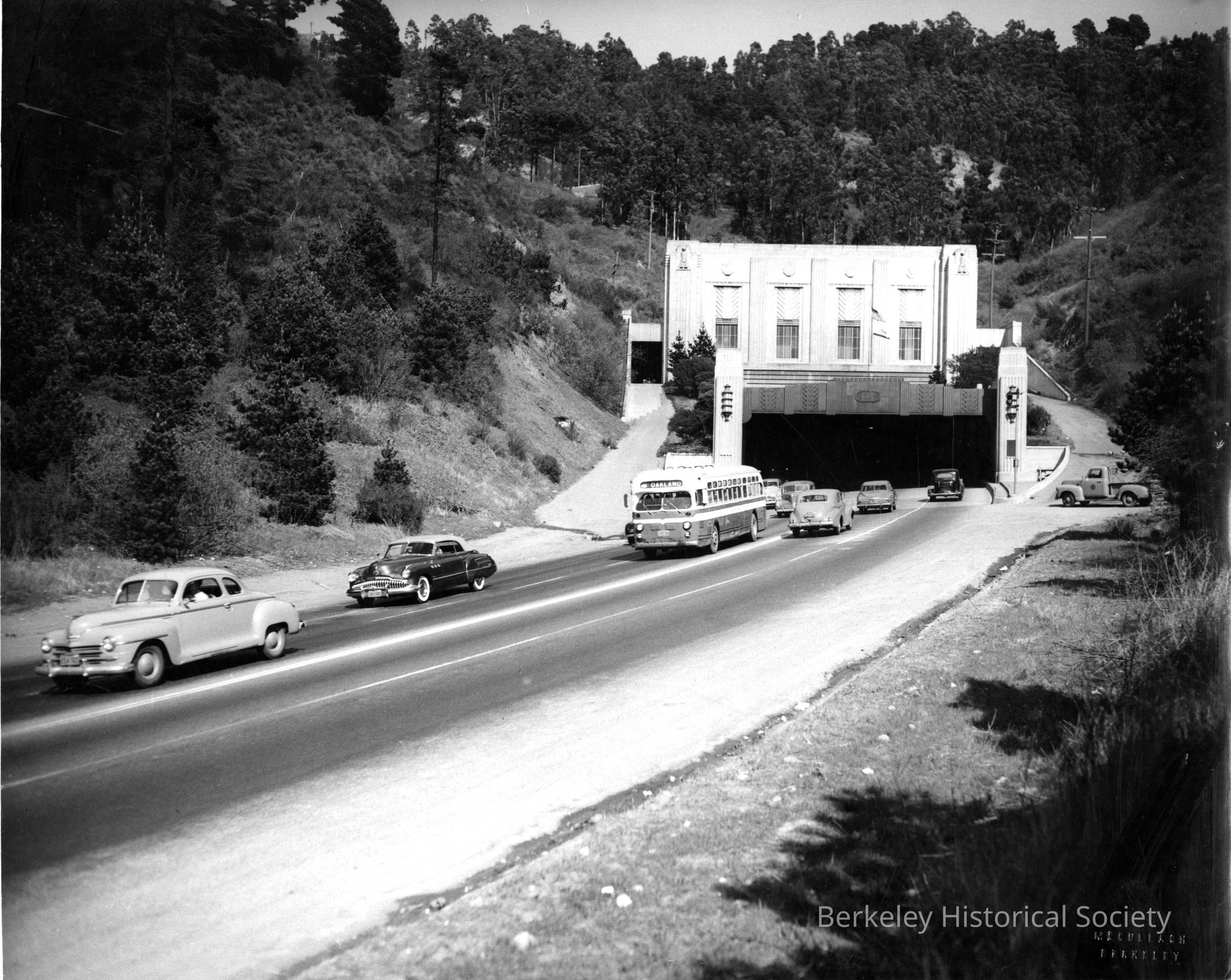 Oakland Caldecott Tunnel West Portal Greyhound bus and cars