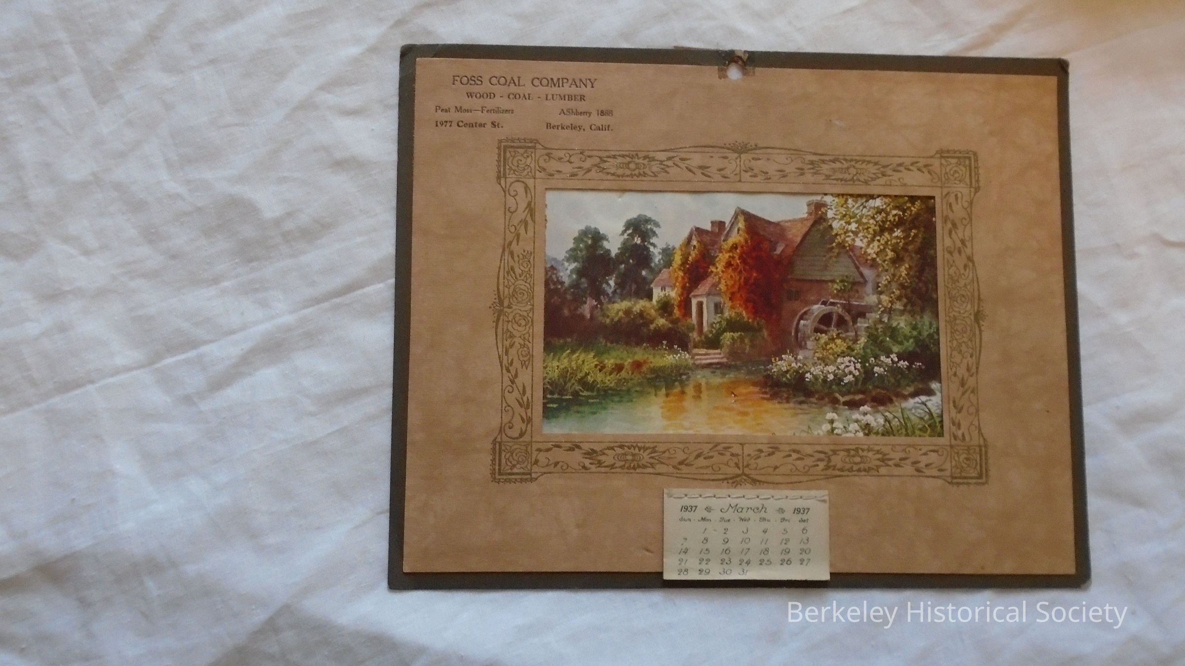 Printing in upper left corner: "FOSS COAL COMPANY wood-coal-lumber peat moss-fertilizer AShberry 1888 1977 Center St. Berkeley, Calif."