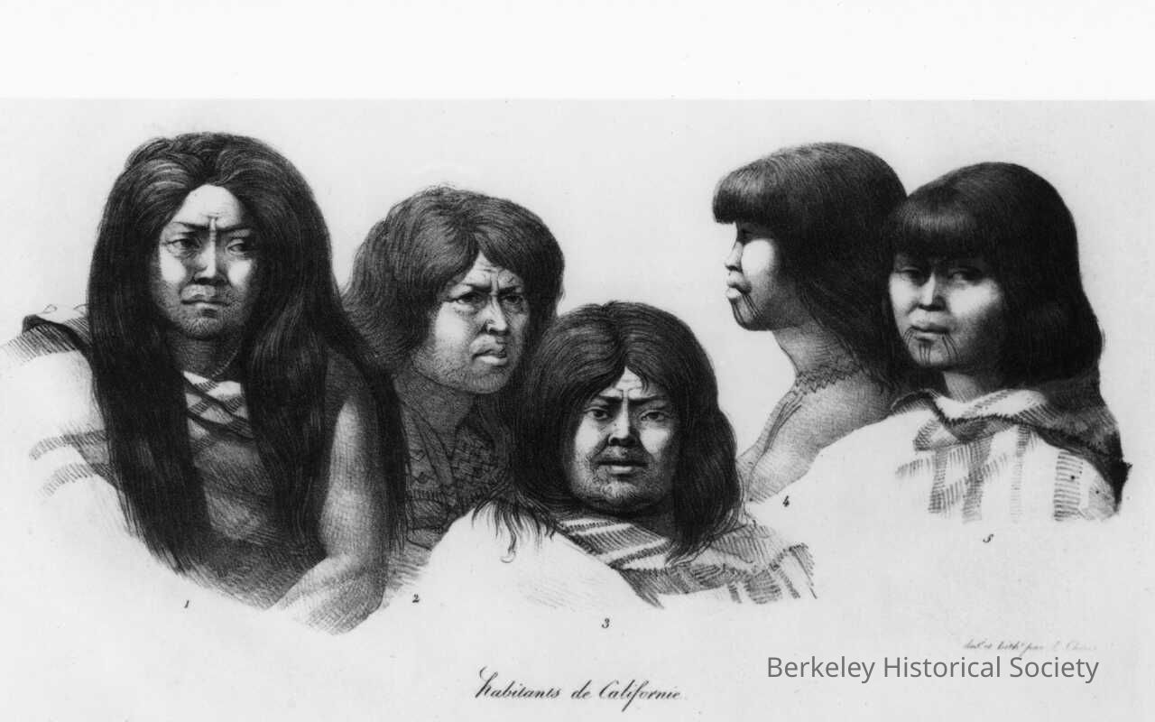 Drawing of California native inhabitants. Photo of drawing by Louis Choris.