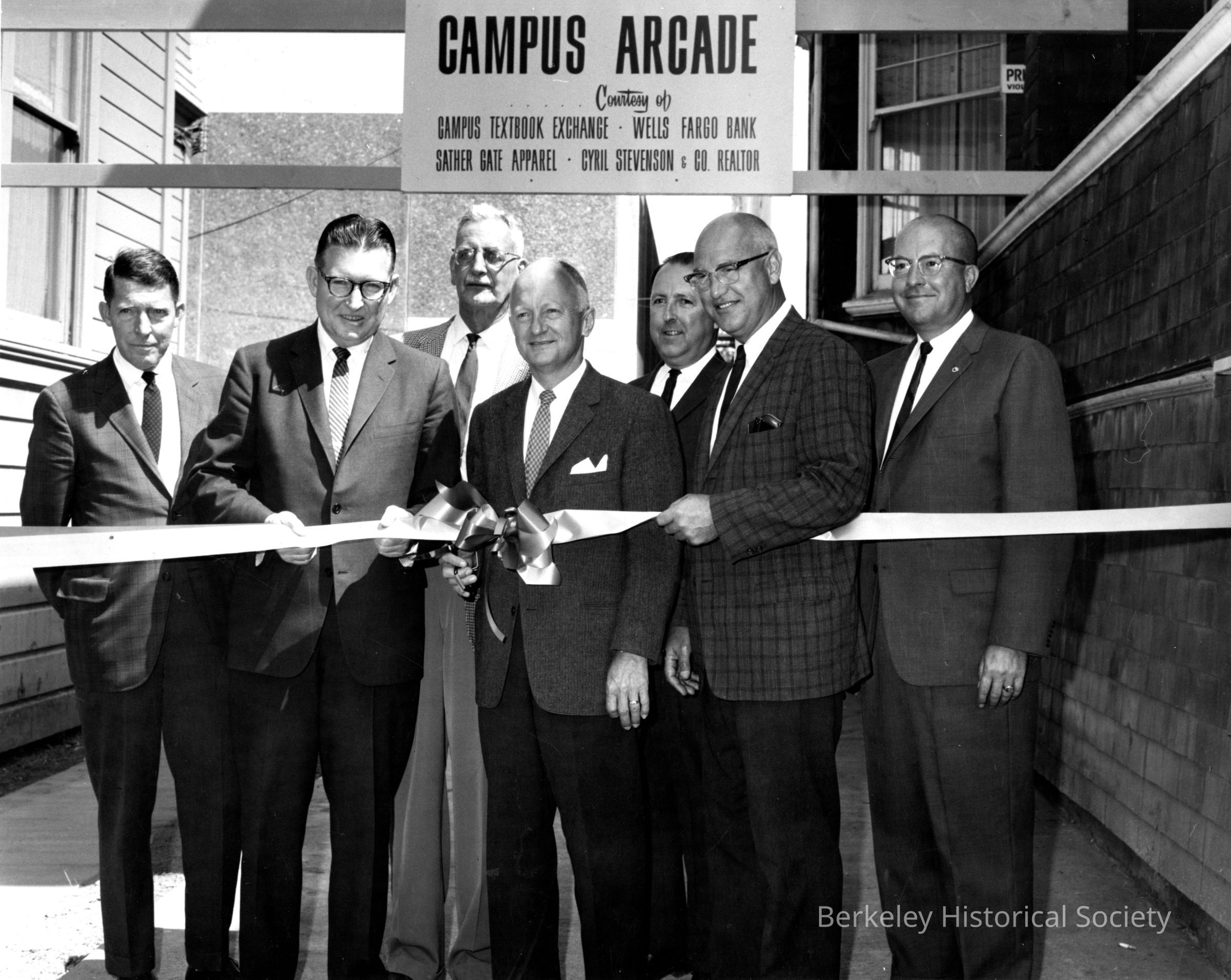 Arcade betweens Bancroft Way and Durant Avenue. Present are S. Suy, McEwing, Syrel Stert, . Not all names legible.Lexicon