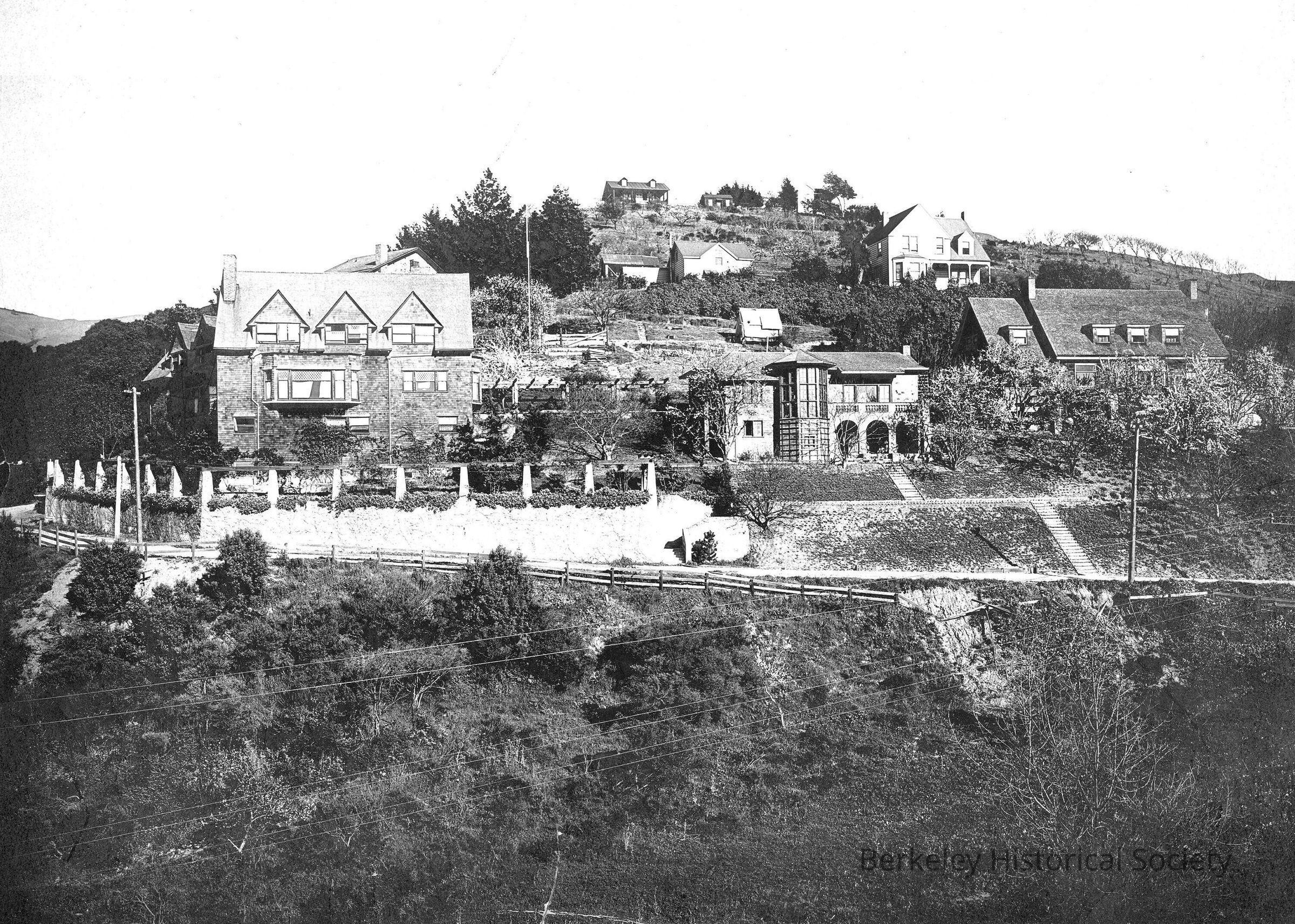 View across gulley to houses on Canyon Road: Rieber house, Torrey-Kelley house, Clifton Price apartments.Other Names and Numbers