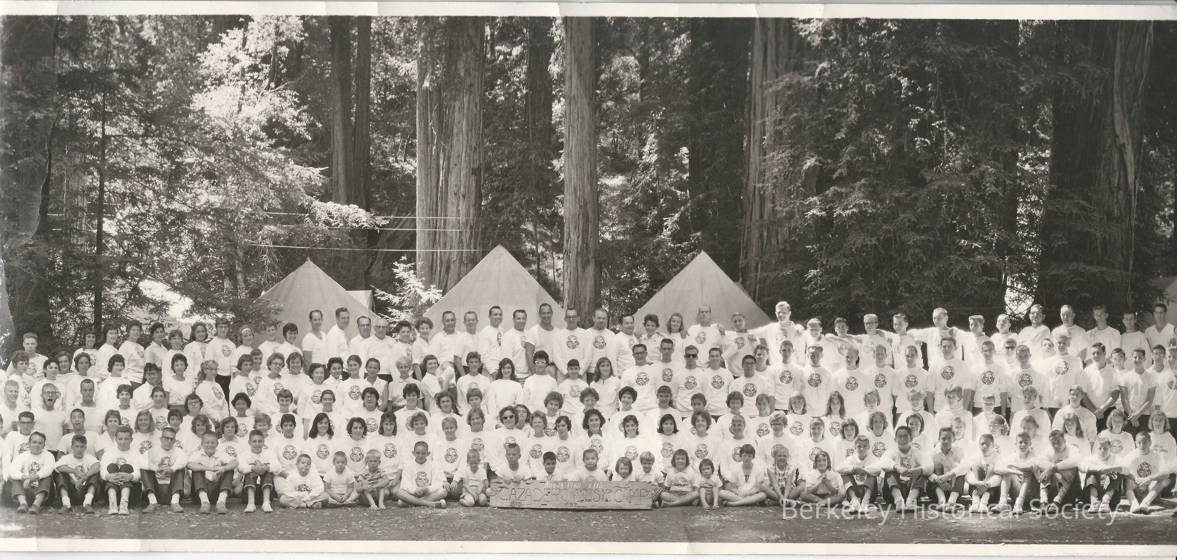 Panorama style photograph of attendees and staff of the camp, Aug 29, 1960.Other Names and Numbers