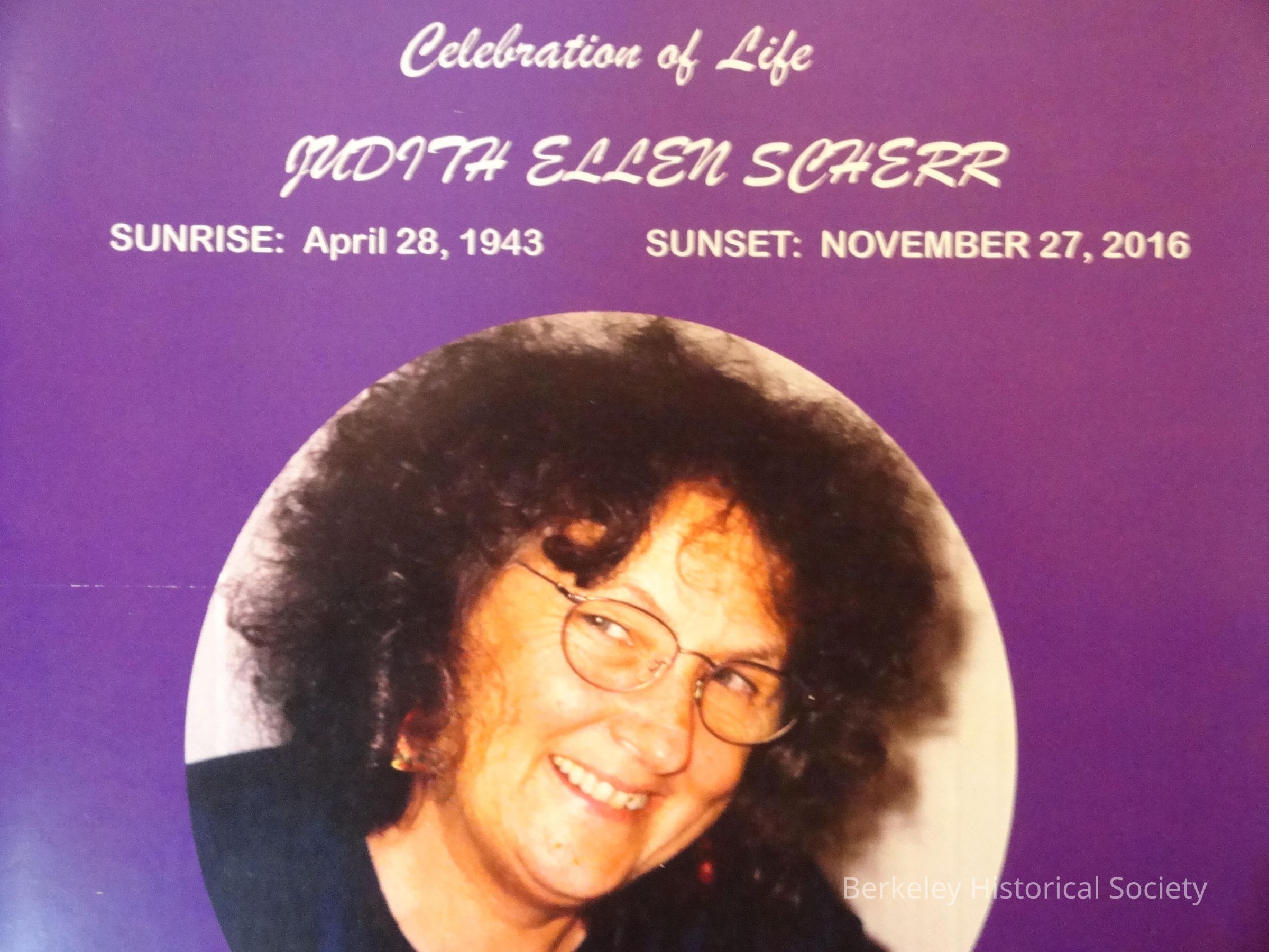 Celebration of life, Judith Ellen Scherr.Entry/Object ID