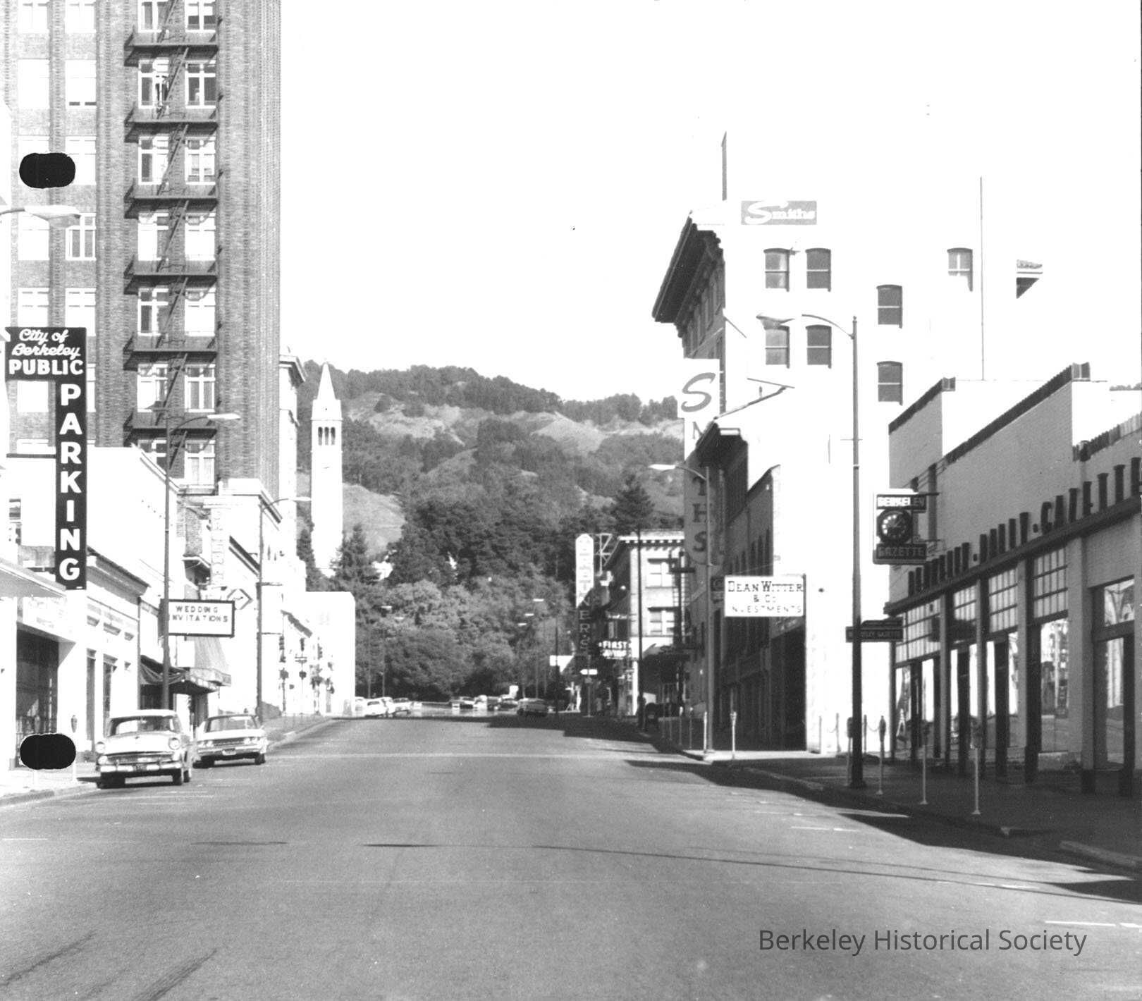 Center Street looking east from mid-block between Milvia and Shattuck, 1953
