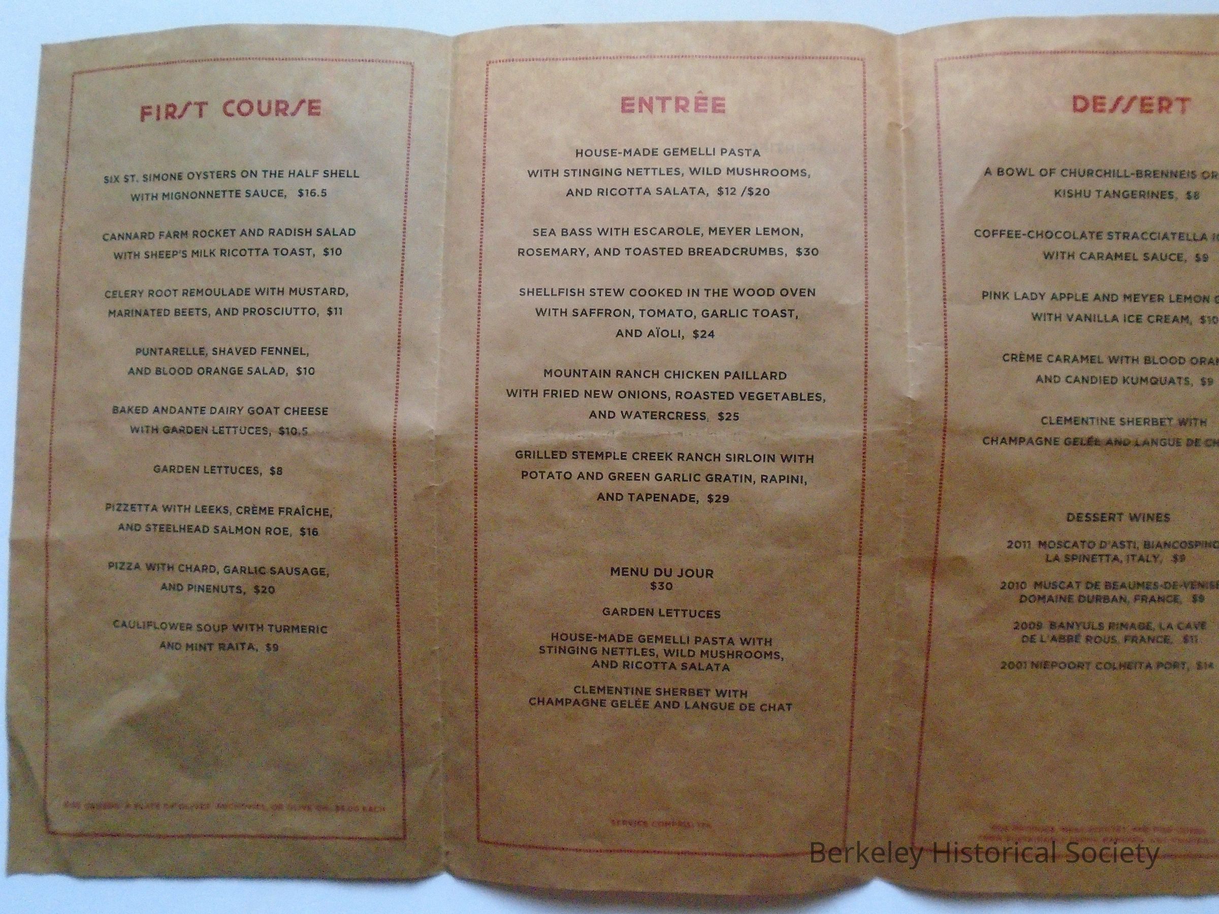 Chez Panisse MenuEntry/Object ID