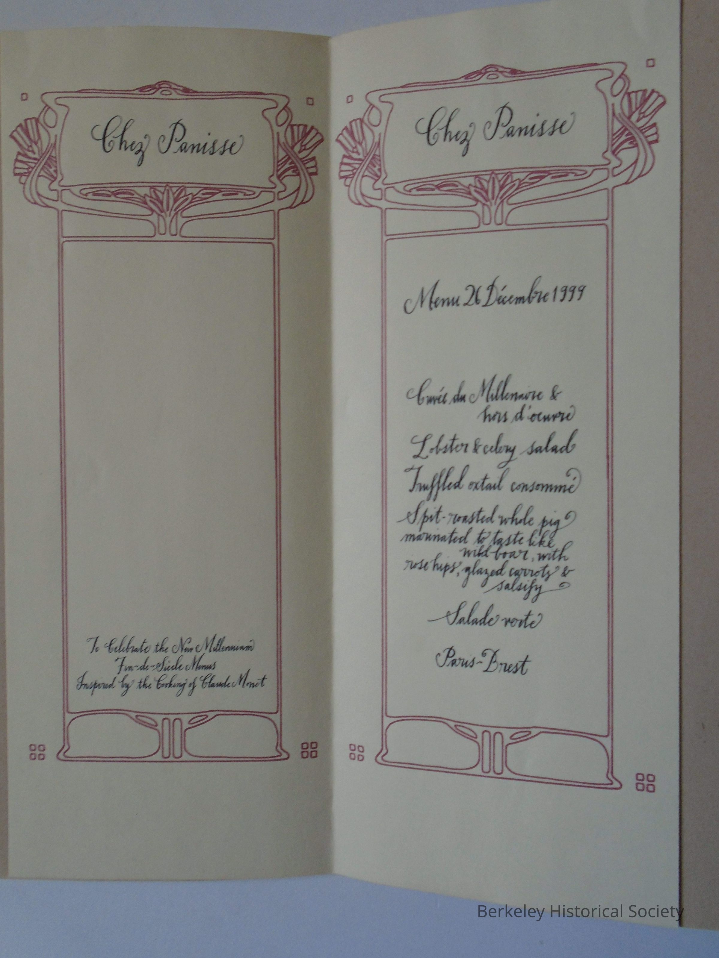 Chez Panisse paper menu. Menu for December 26, 1999, to celebrate the new millennium.
