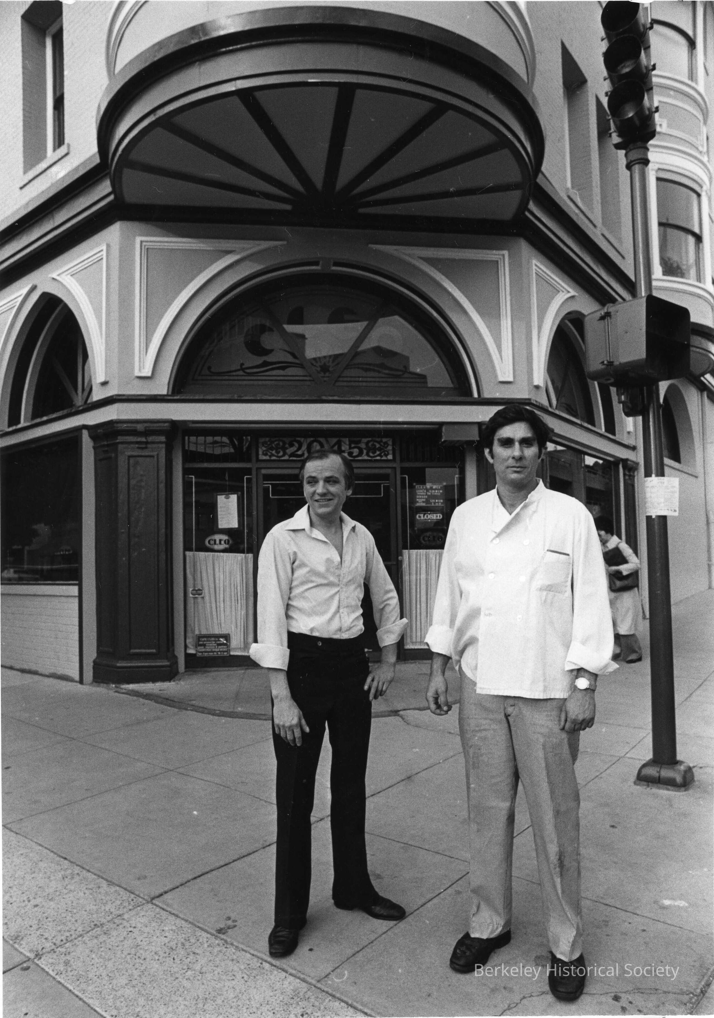 Jean Claude Masotti and Jim Bradfield standing outside the entrace to Cleo. 2045 Shattuck Avenue