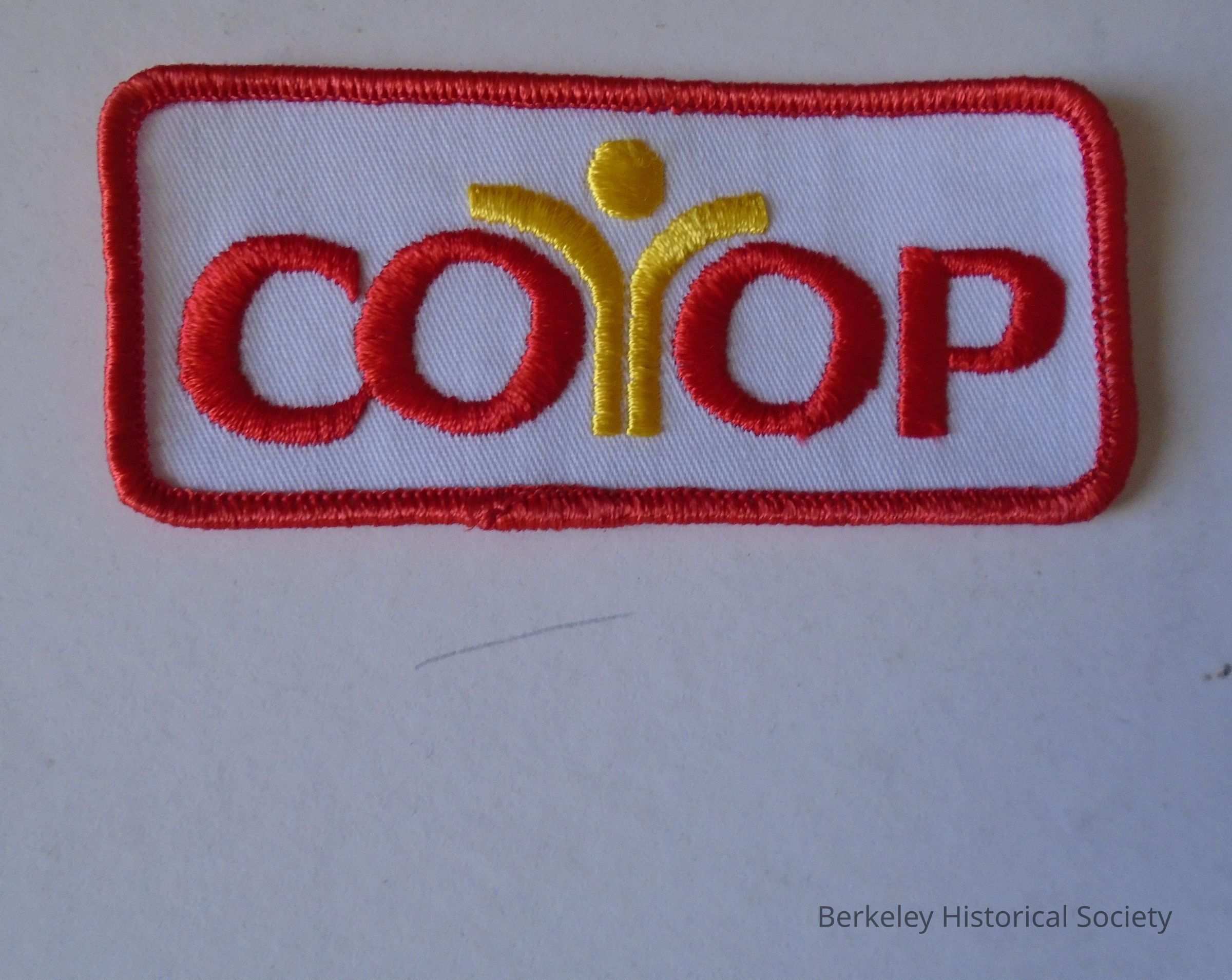 Rectangular cloth badge with Co-op logo in red and yellow on a white background.