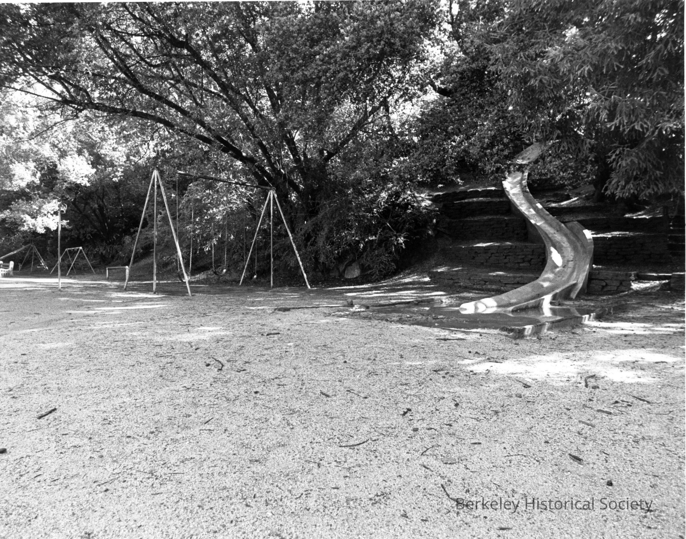 Play area, showing swings and bottom of cement slide.Other Names and Numbers