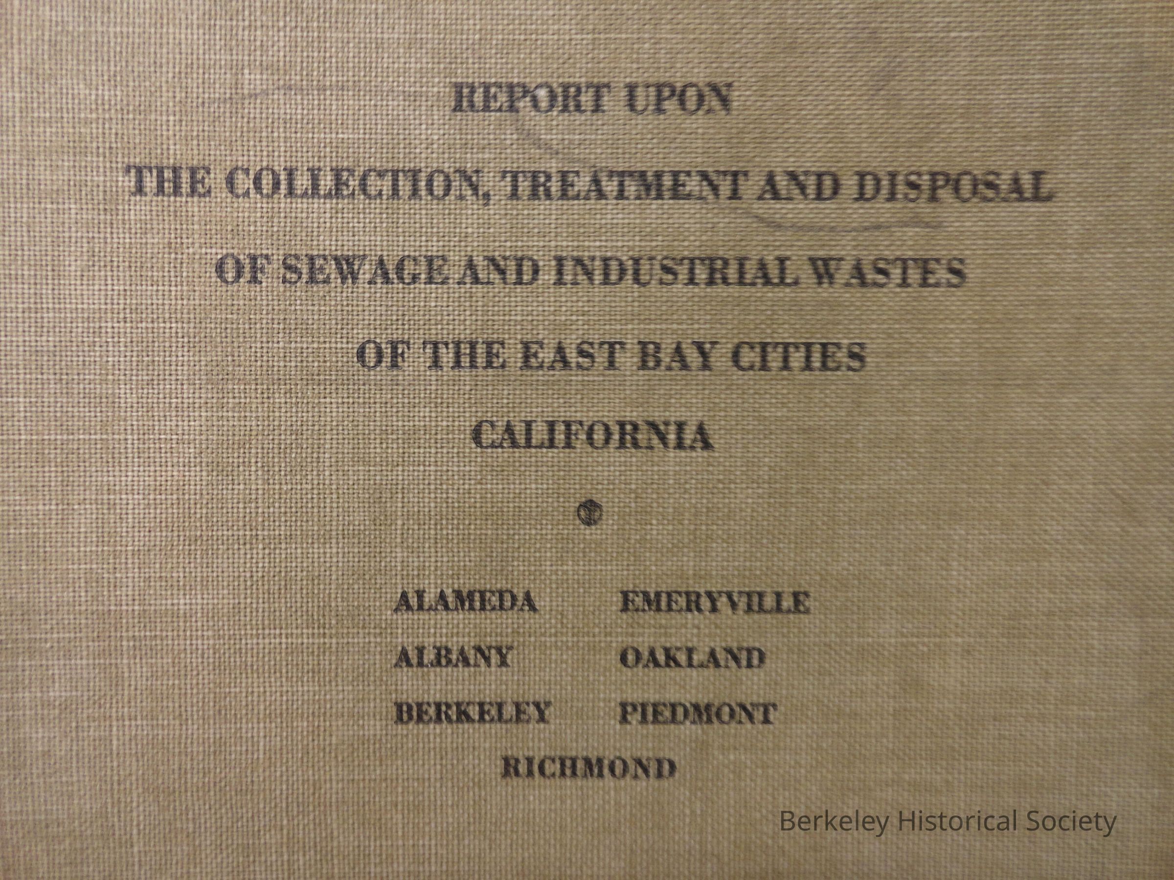 Collection, treatment and disposal of sewage and industrial wastes of the East bay cities, California (TD525.S3 E3)Entry/Object ID
