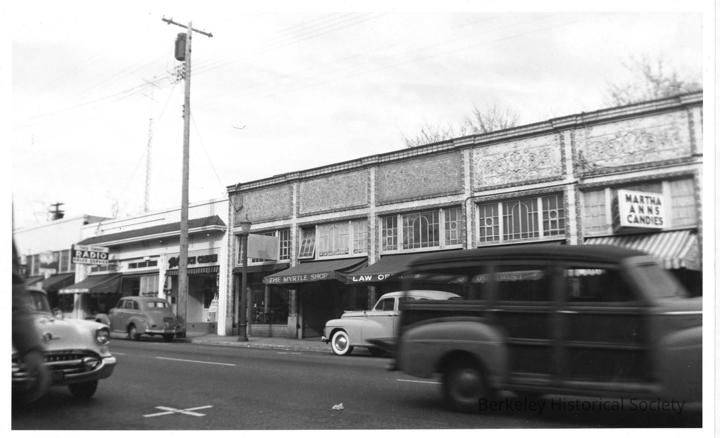 Visible are Martha Ann's Candies and The Myrtle Shop