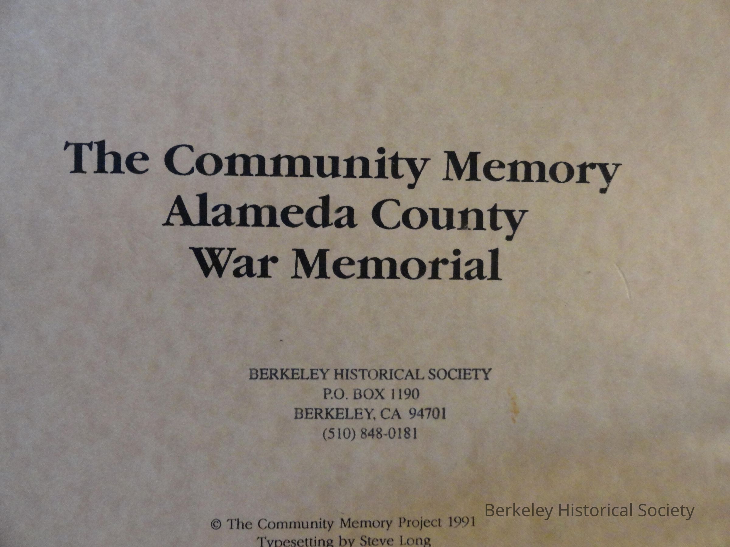 Community Memory: Alameda County War Memorial, The