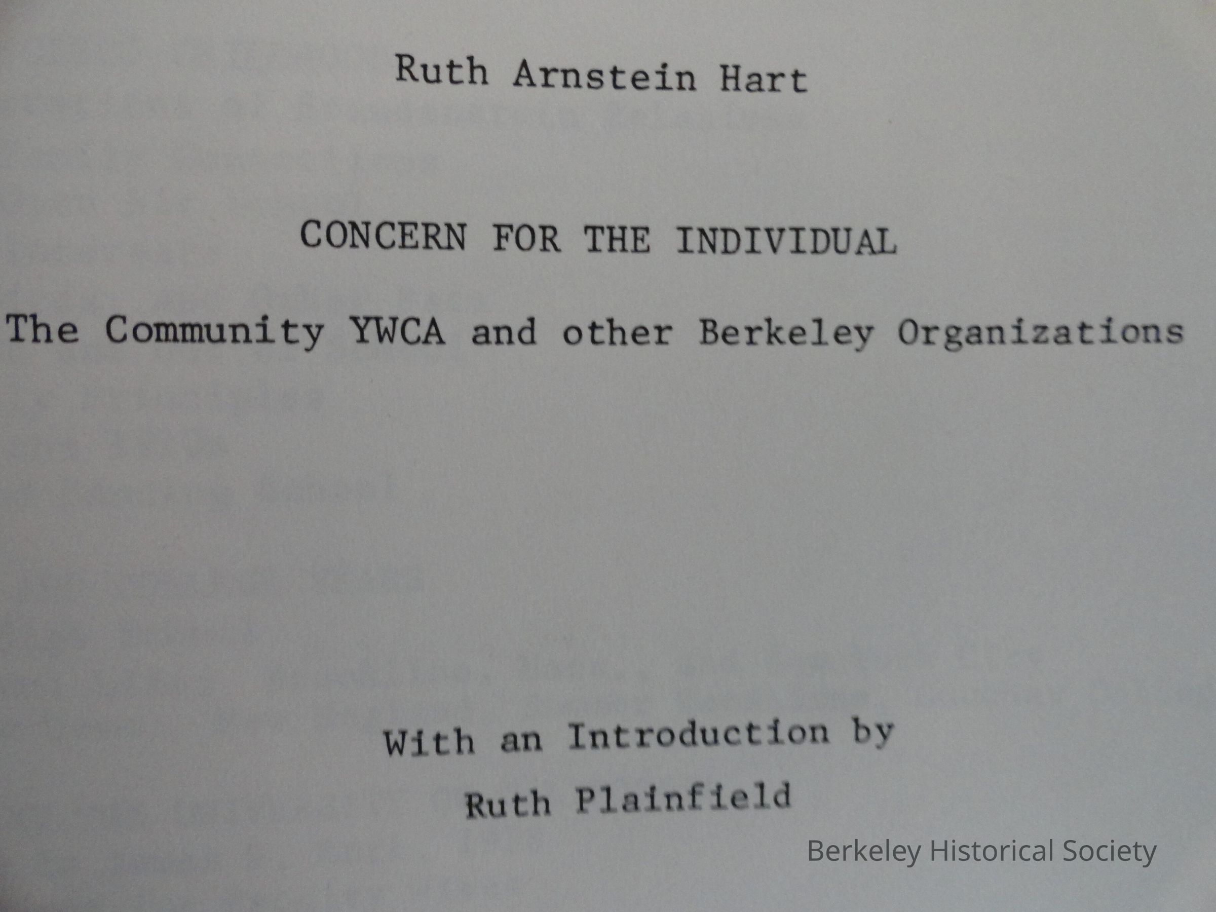 Concern for the individual; Ruth Arnstein HartEntry/Object ID