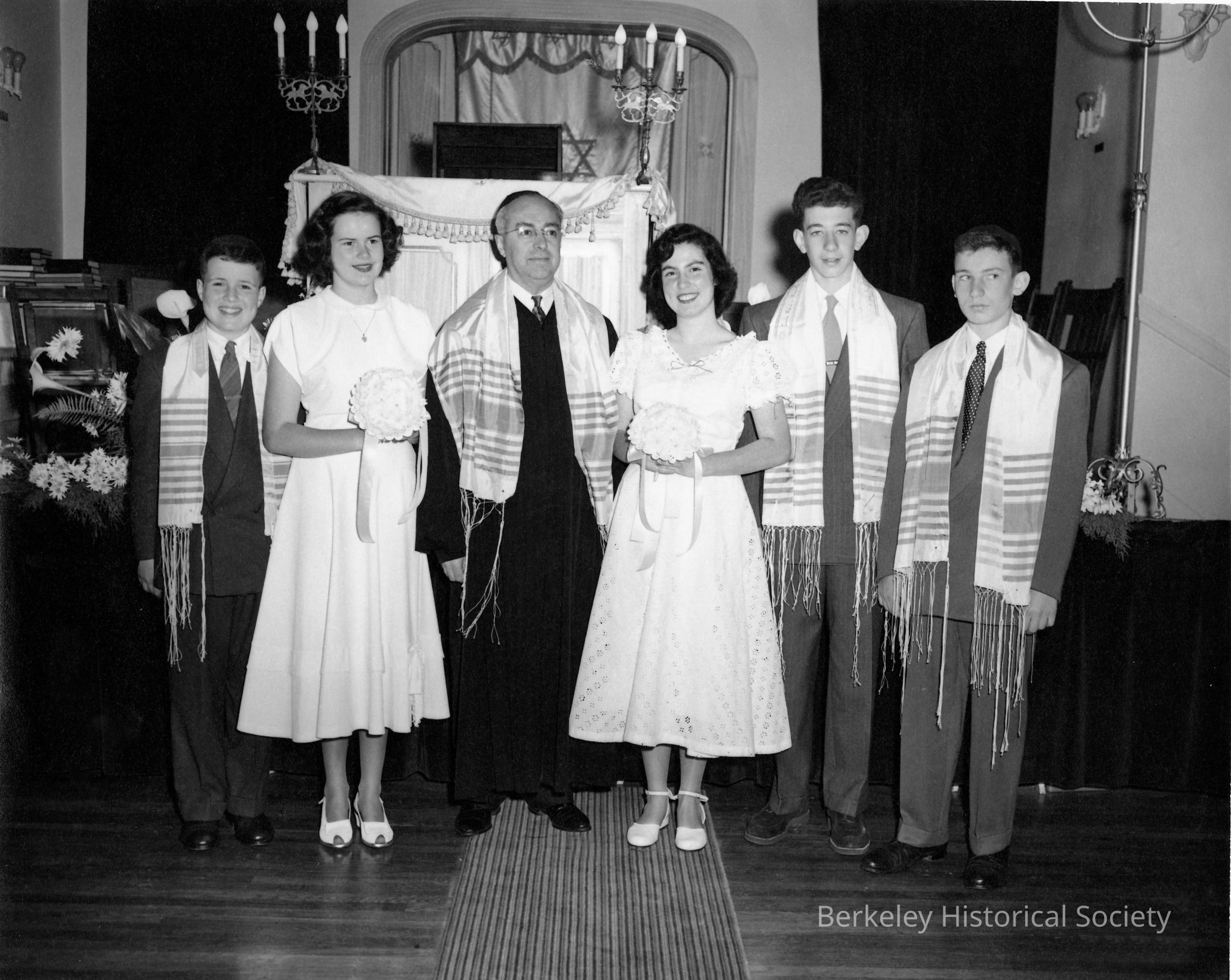 Second confirmation class. Albert and Ursula Goldschmidt, Rabbi Joseph Giten, Ellen Finkle, Merwin Brossler,Other Names and Numbers