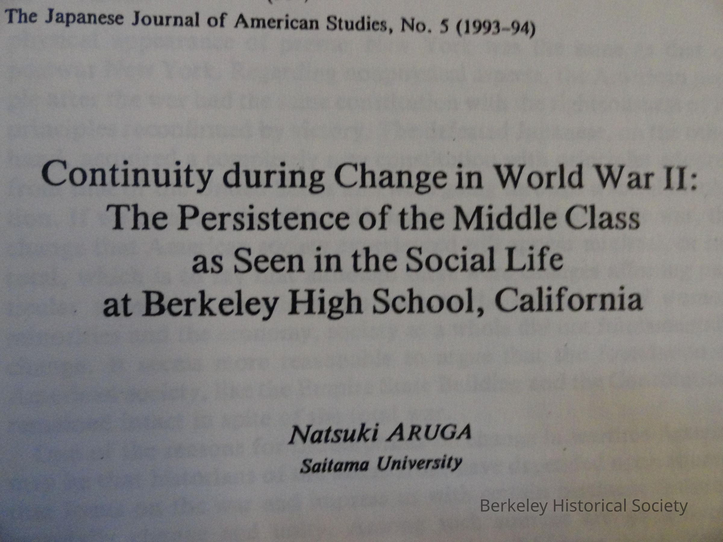 Continuity during change in World War II; the persistence of the middle class as seen in social life at Berkeley High School, CaliforniaEntry/Object ID