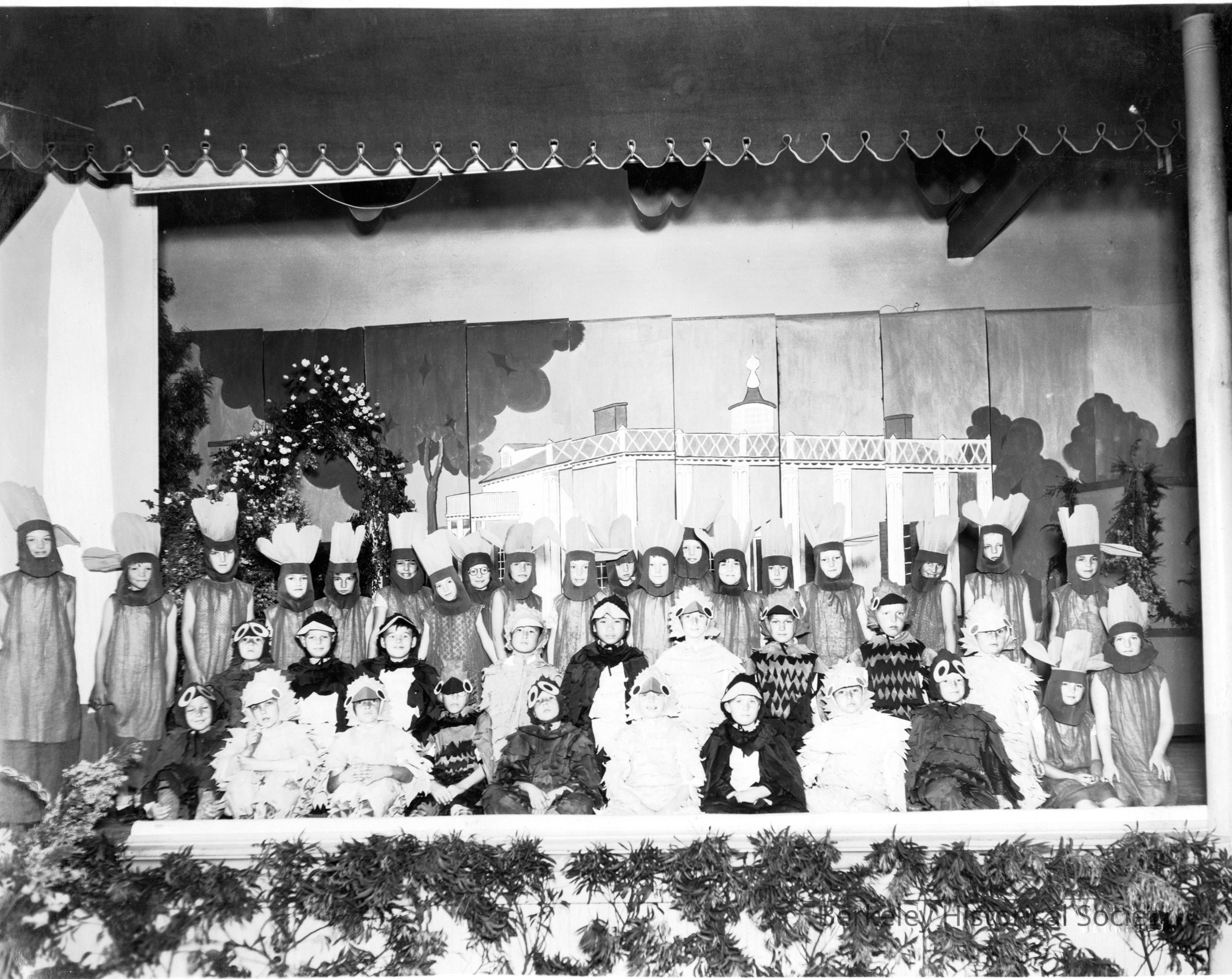 Costumed students pose for a photo on stage at Washington School at Grove (MLK Way) and BancroftOther Names and Numbers