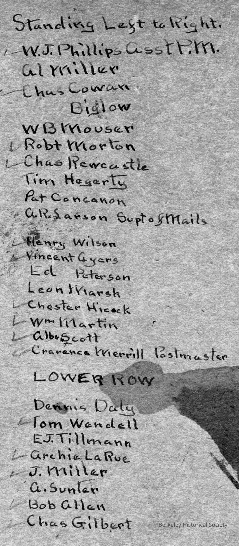Berkeley Post Office staff Names on back of print - see 433-191-6478b for list and rows.