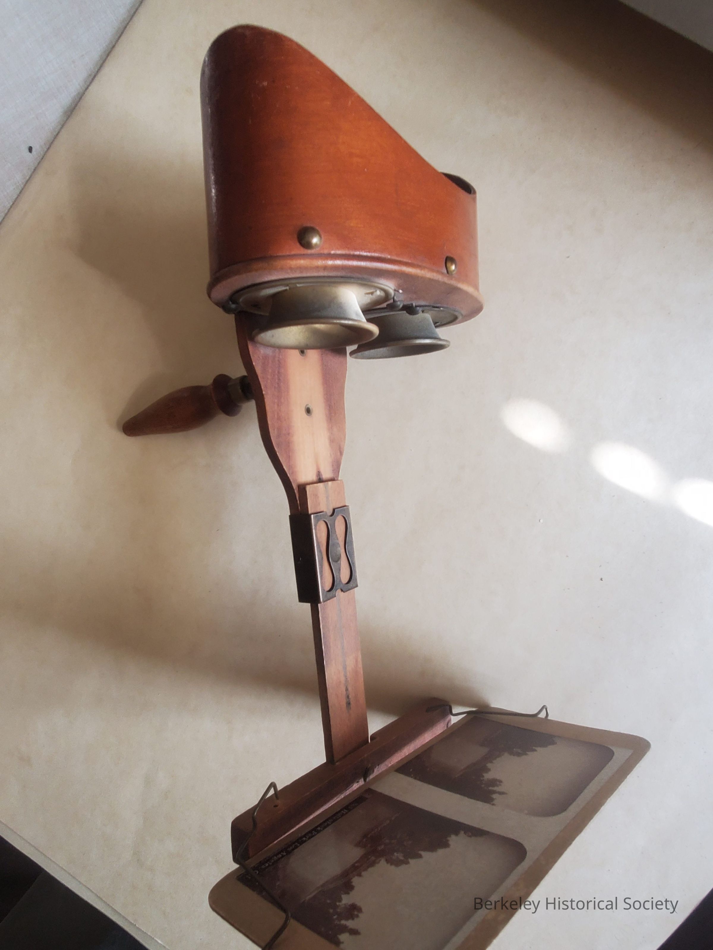Stereoscope and ca. 50 stereo photographs, only about 10 of which are of California scenes. Instrument is somewhat delicate and should be used with supervision.Dimensions