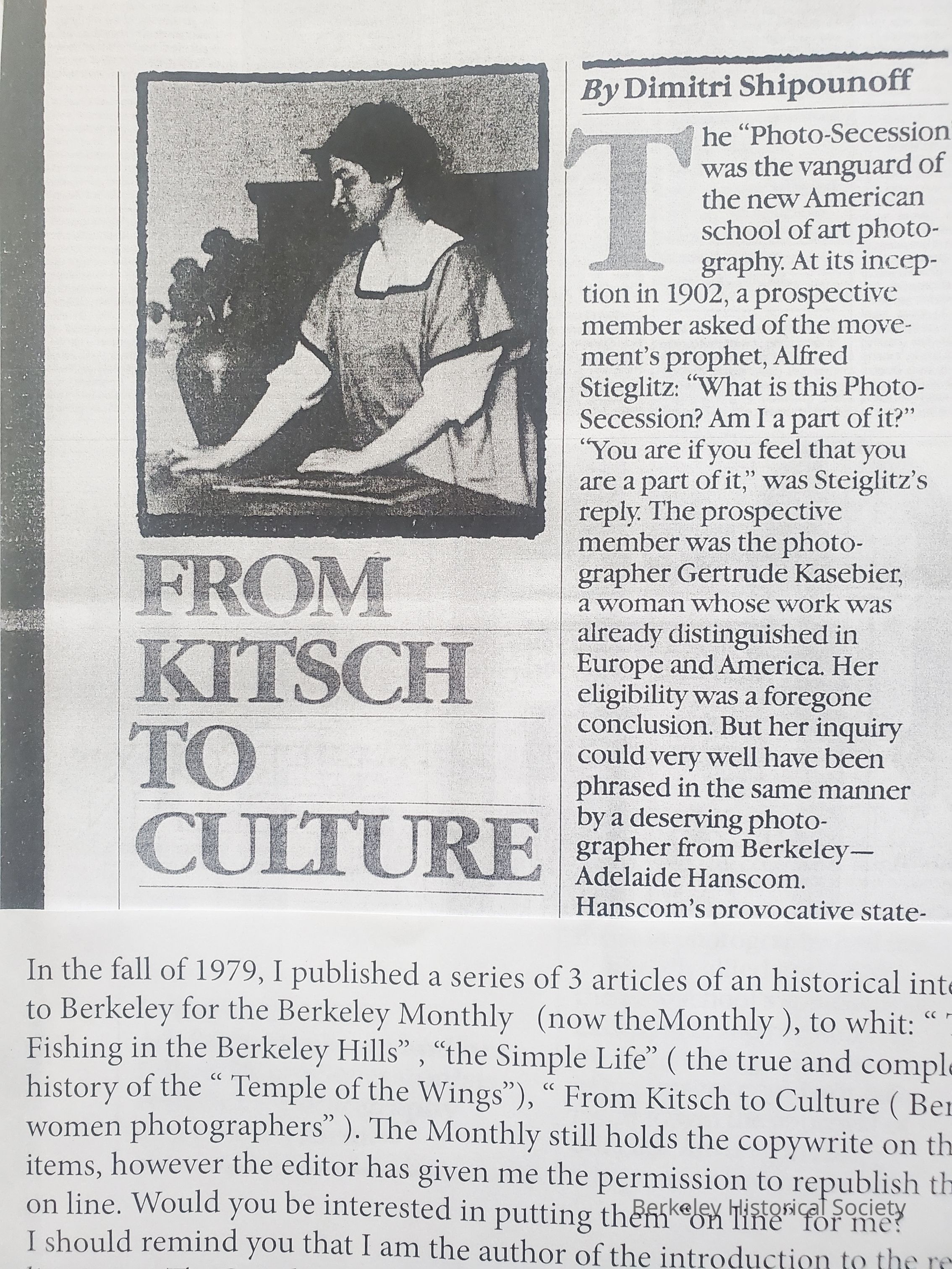"From kitsch to culture: in the early 1900s Adelaide Hanscom and her fellow photo-secessionsts redefined photography as a true art form."
