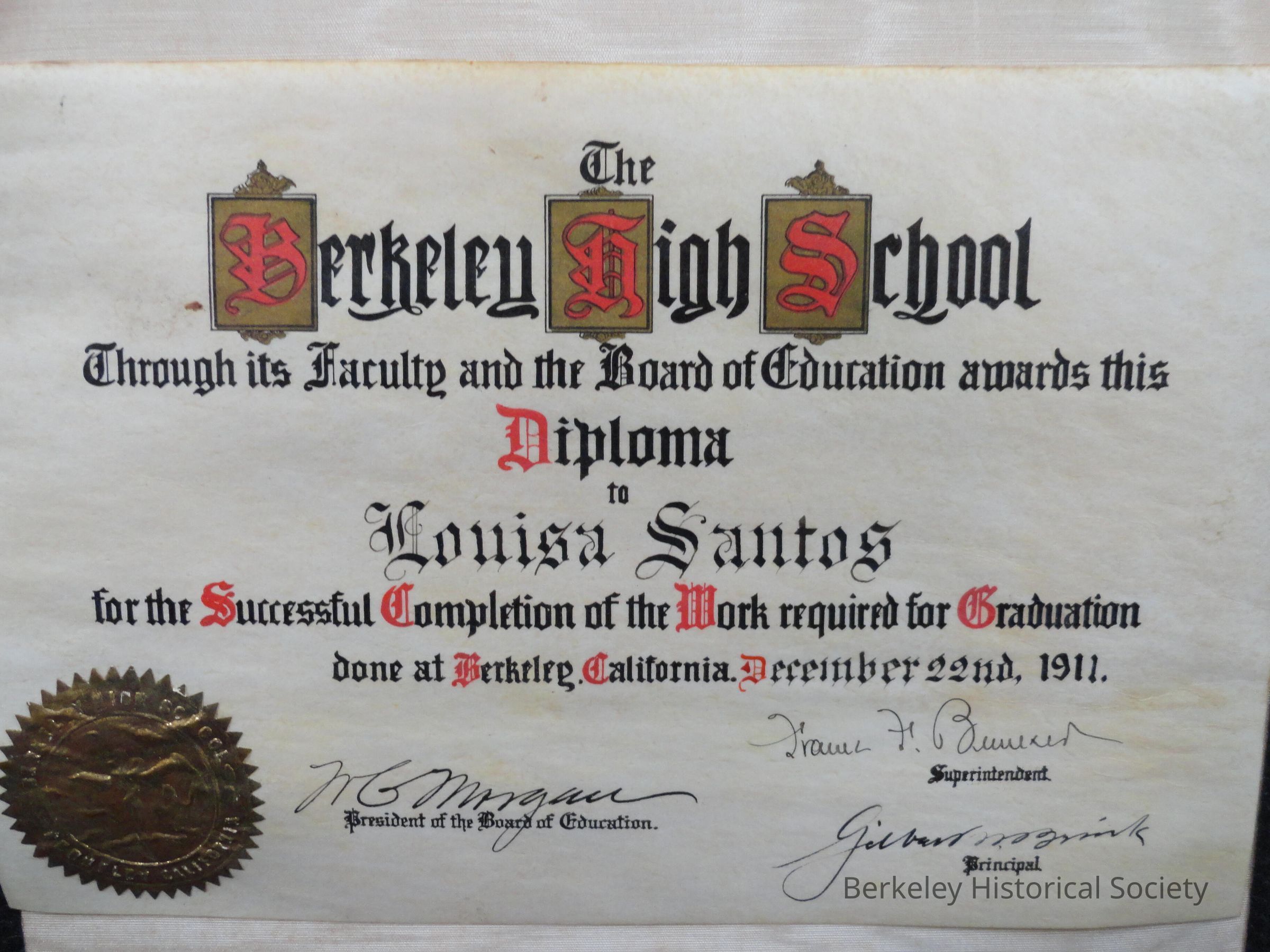 Diploma for Louisa Santos, Berkeley High SchoolTitle