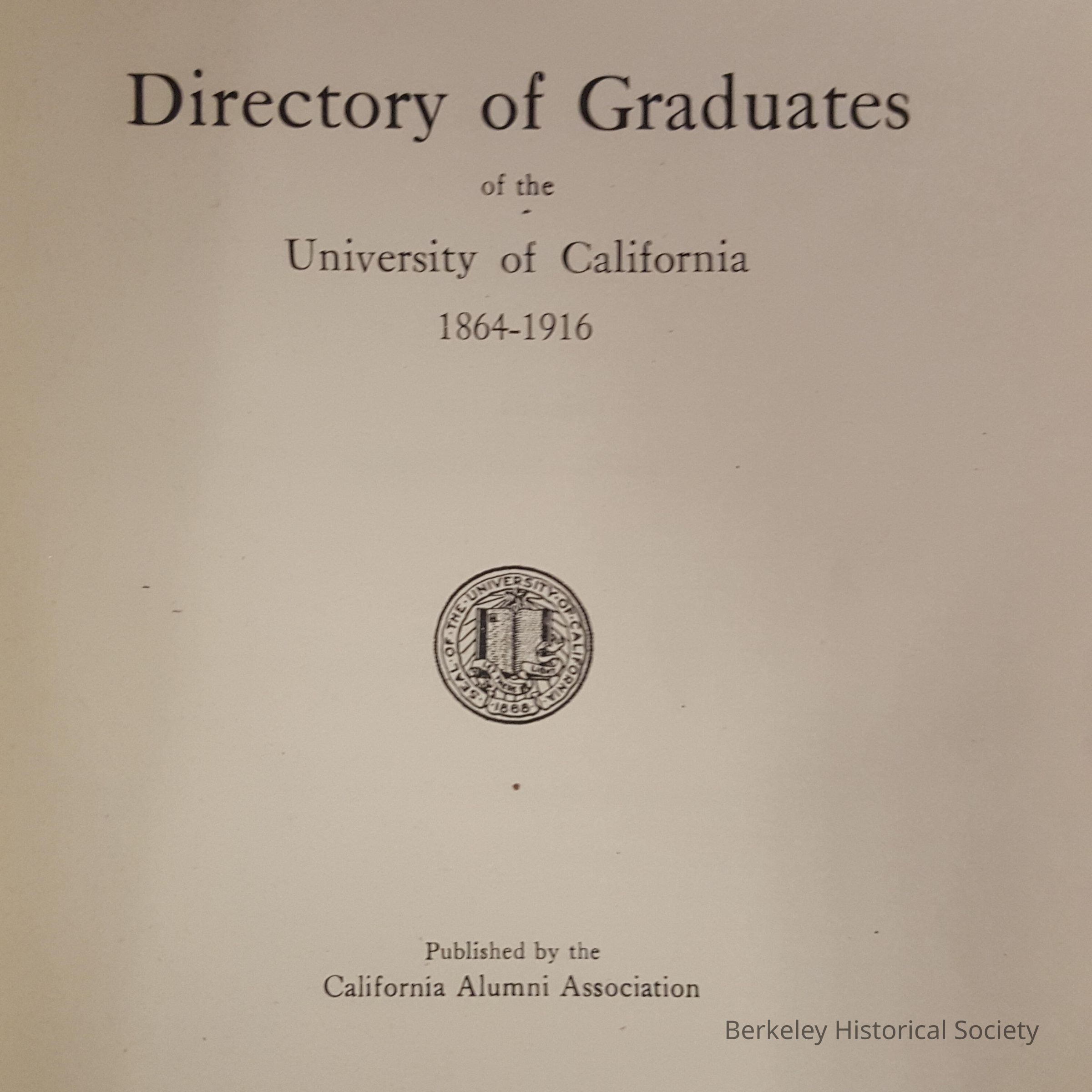 Directory of Graduates of the University of California, 1864-1916Entry/Object ID