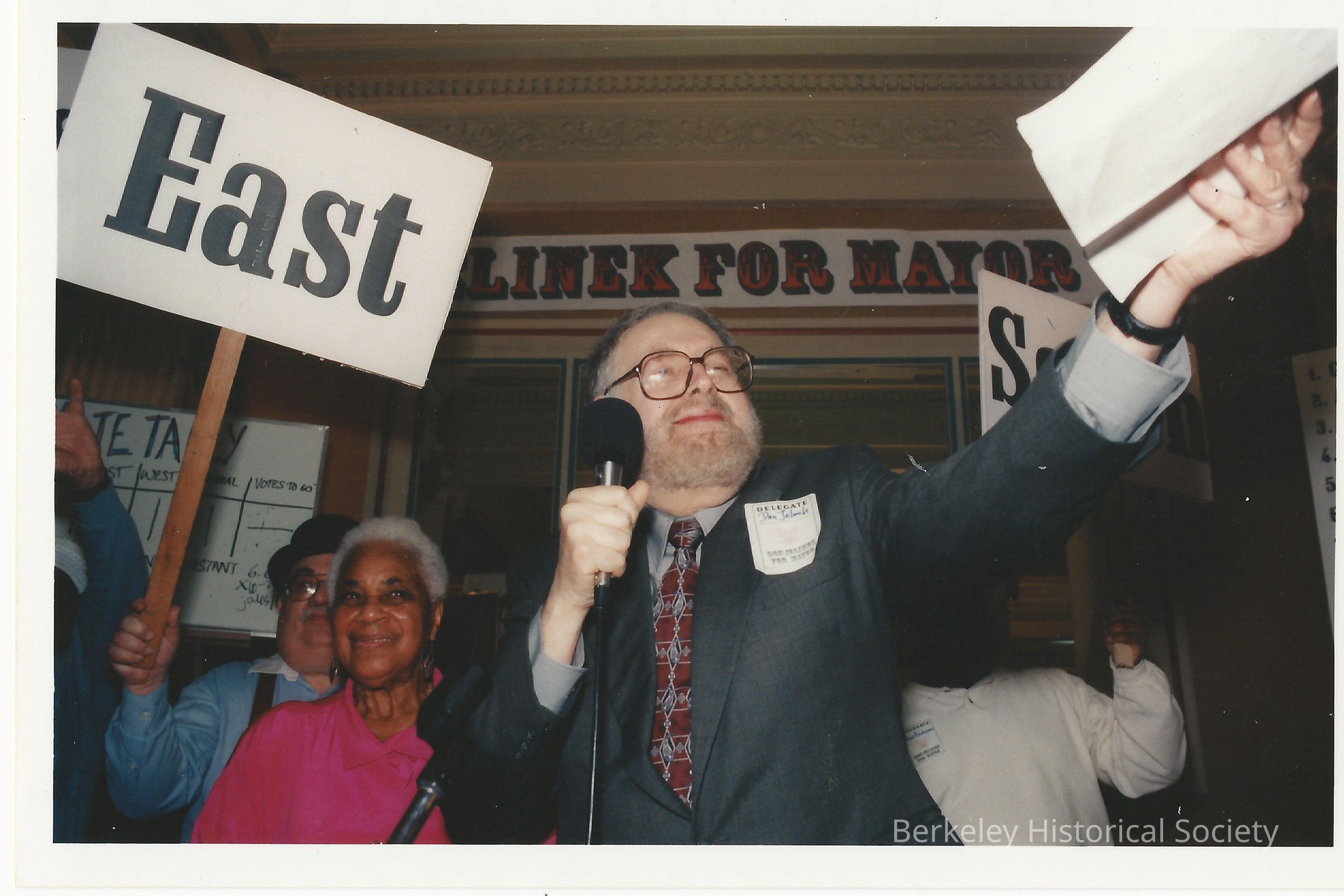 12 photos, some color. Not all have been scanned. Speaking at kick-off of mayoral campaign; one with Teddy Andrews; snapshots speaking at unidentified outdoor event.