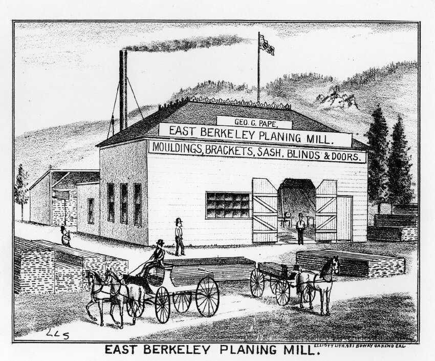 Photographic copy of a lithograph by Elliott. At lower rt: "Elliott Lith. 982 Bdway Oakland Cal." From 1885 book by lithographer/publisher W.W. Elliott, "Oakland and Surroundings Illustrated" (public domain, available online)