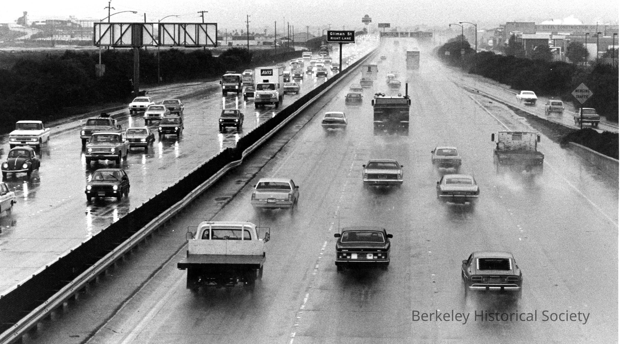 Freeway traffic in the rain - Gilman Street Exit sign