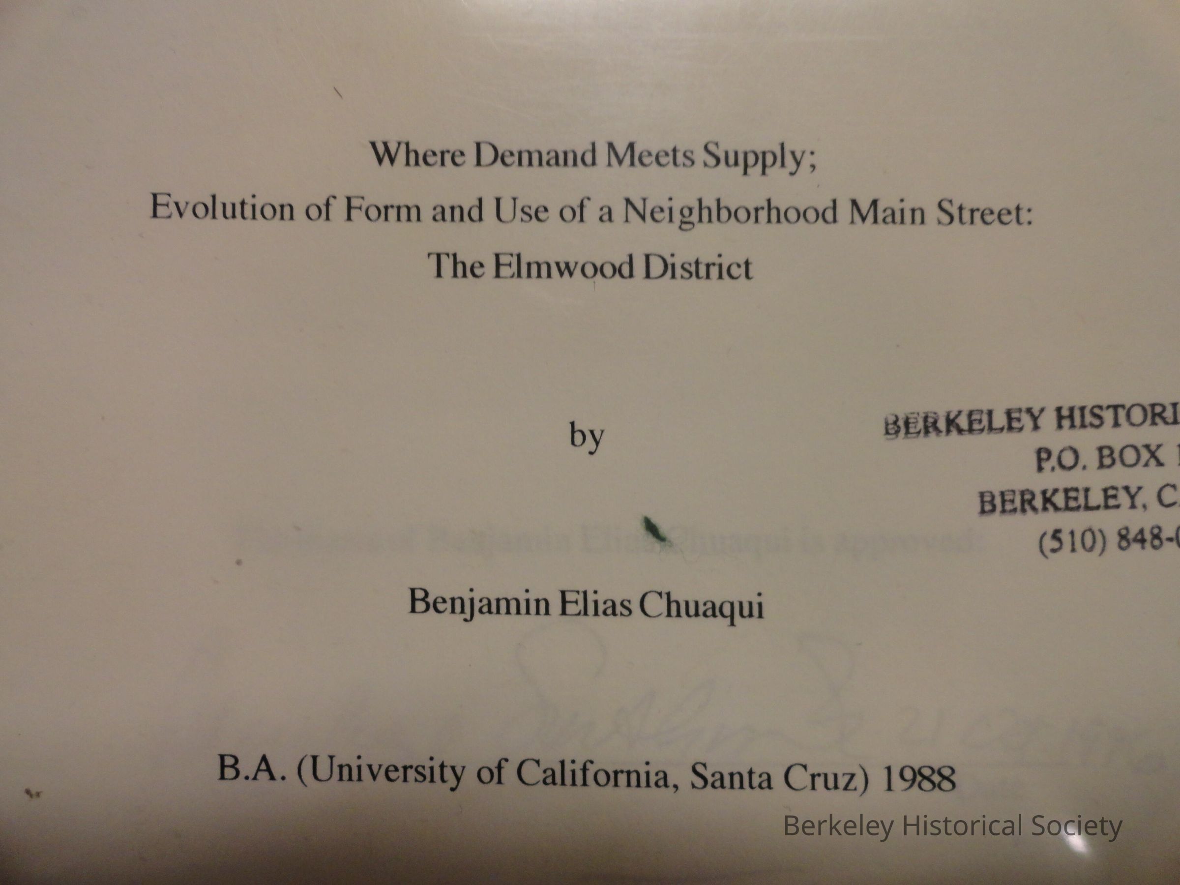Where Demand Meets Supply: Evolution of Form and Use of a Neighborhood Main StreetEntry/Object ID