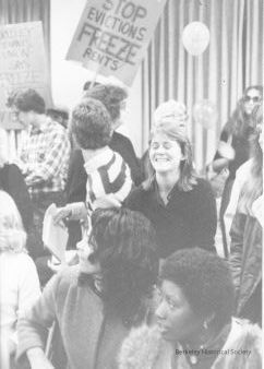 Crowd with tign:" Stop Evections Freeze Rents.