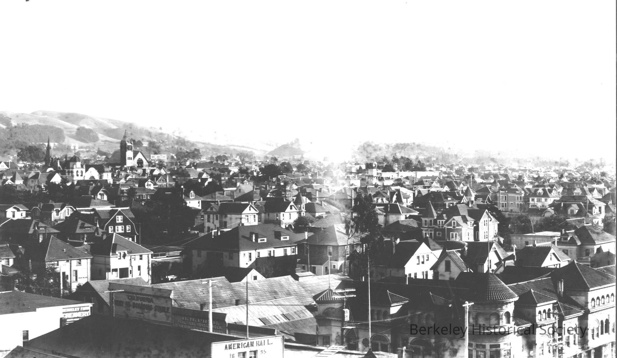 Shattuck Avenue, Center Street, Berkeley Farm Creamery, California Boarding Stable, D. H. Free Practical Horseshoer, America Hall, Churches