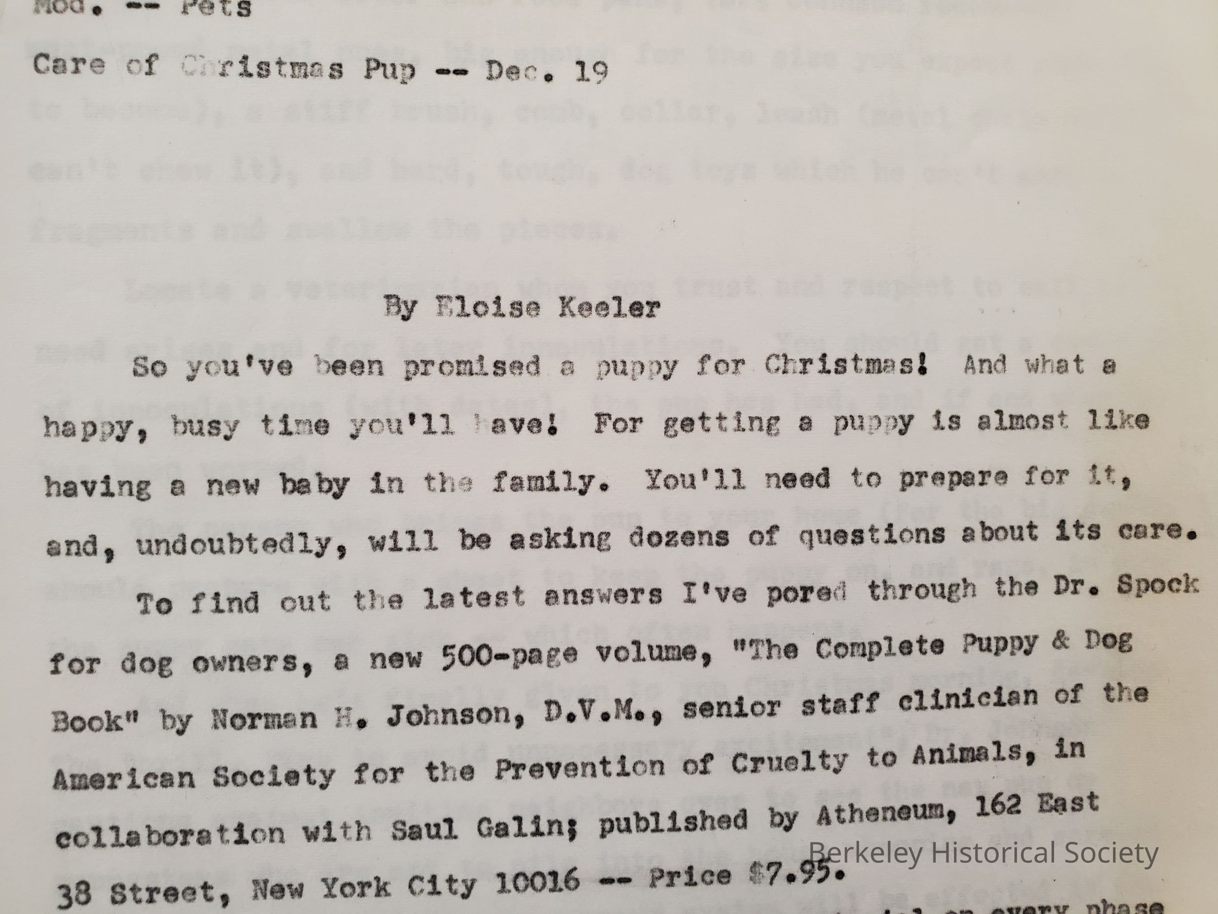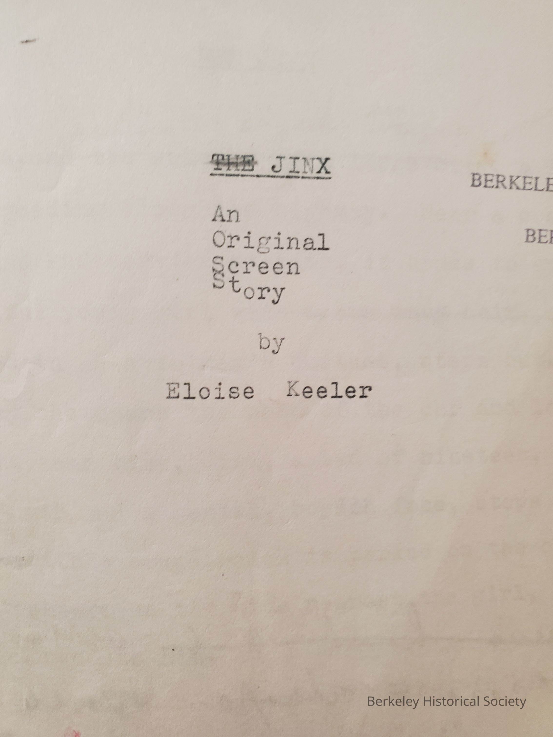 Admin or Bio Notes: Eloise Keeler was born on April 5, 1905, to prominent Berkeley writer Charles Augustus Keeler, and artist and photographer Louise Mapes Bunnell Keeler. Eloise Keeler graduated from the University of California, Berkeley in 1926, majoring in economics and acted in student productions. Keeler was a free-lance writer in the San Francisco Bay Area, writing in many different genres including short stories, newspaper and magazine articles, plays, screenplays, radio and television scripts, poetry and a biography on her brother Leonarde Keeler. Eloise Keeler died in Marin County, Calif., on Sept. 24, 2000.