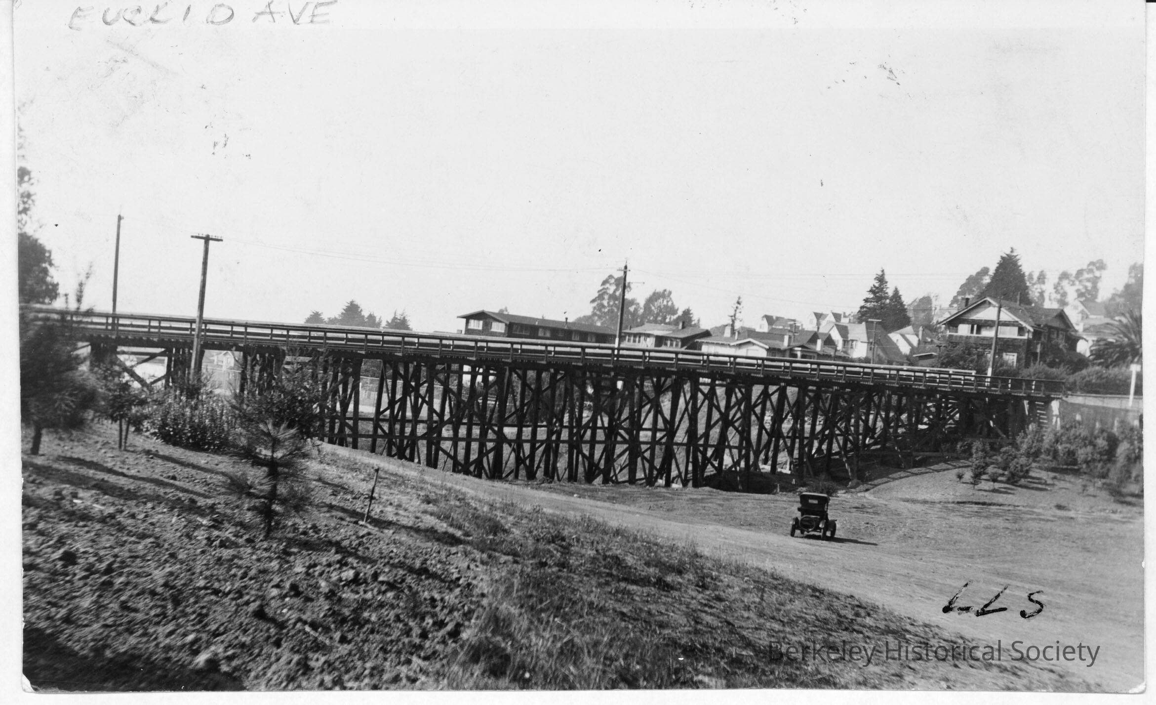 View looking northeast at trestle; car near base of trestle.
