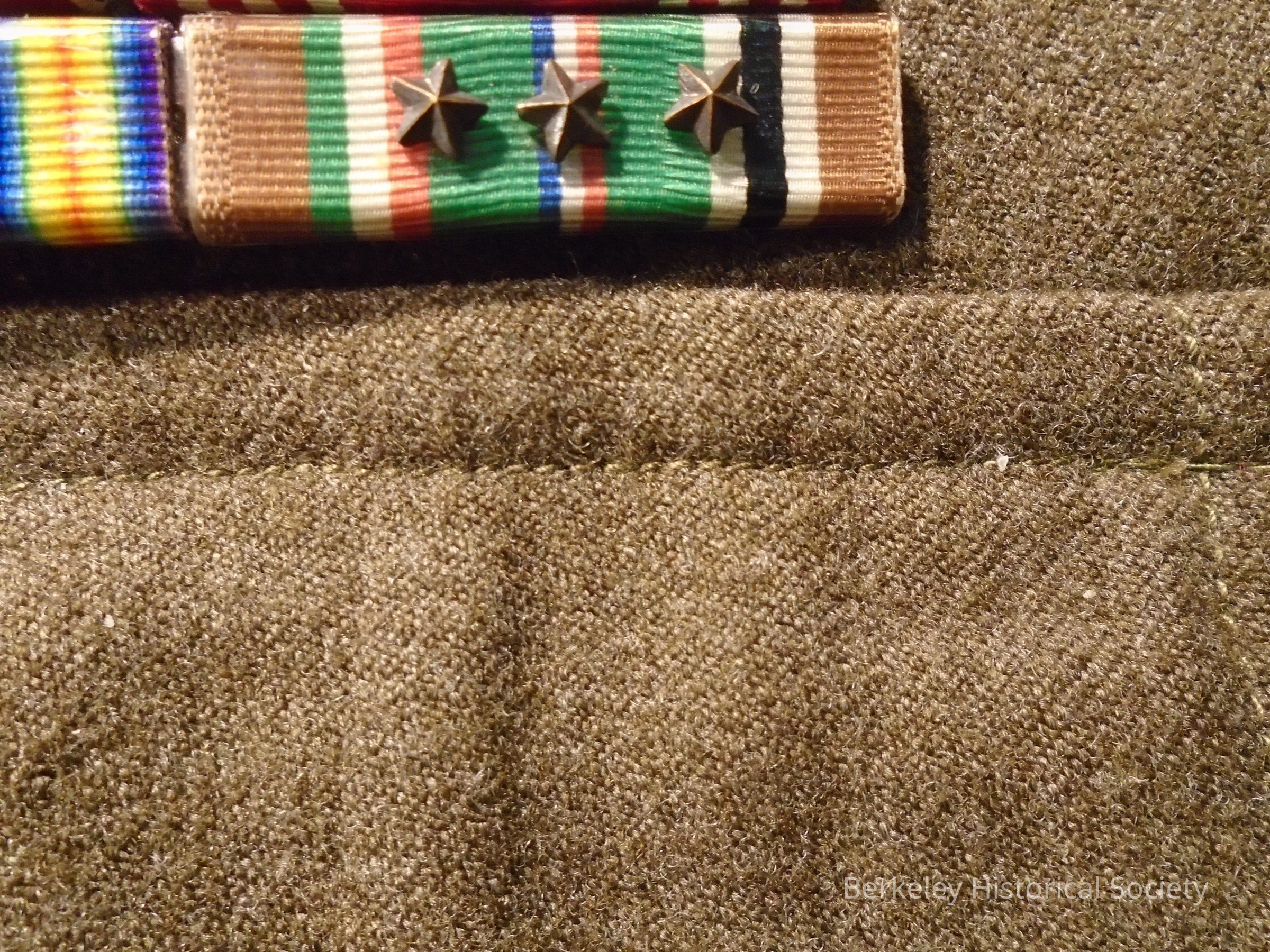 European Theatre and Battle Stars Ribbon. Worn on U.S. Army World War II Ike jacket belonging to William L. Close, Jr. #39048317, Technician Third Grade, 309th Infantry Regiment, Army of the United States. (See 2019.005.1) One of 11 removable pins/medals.Dimensions