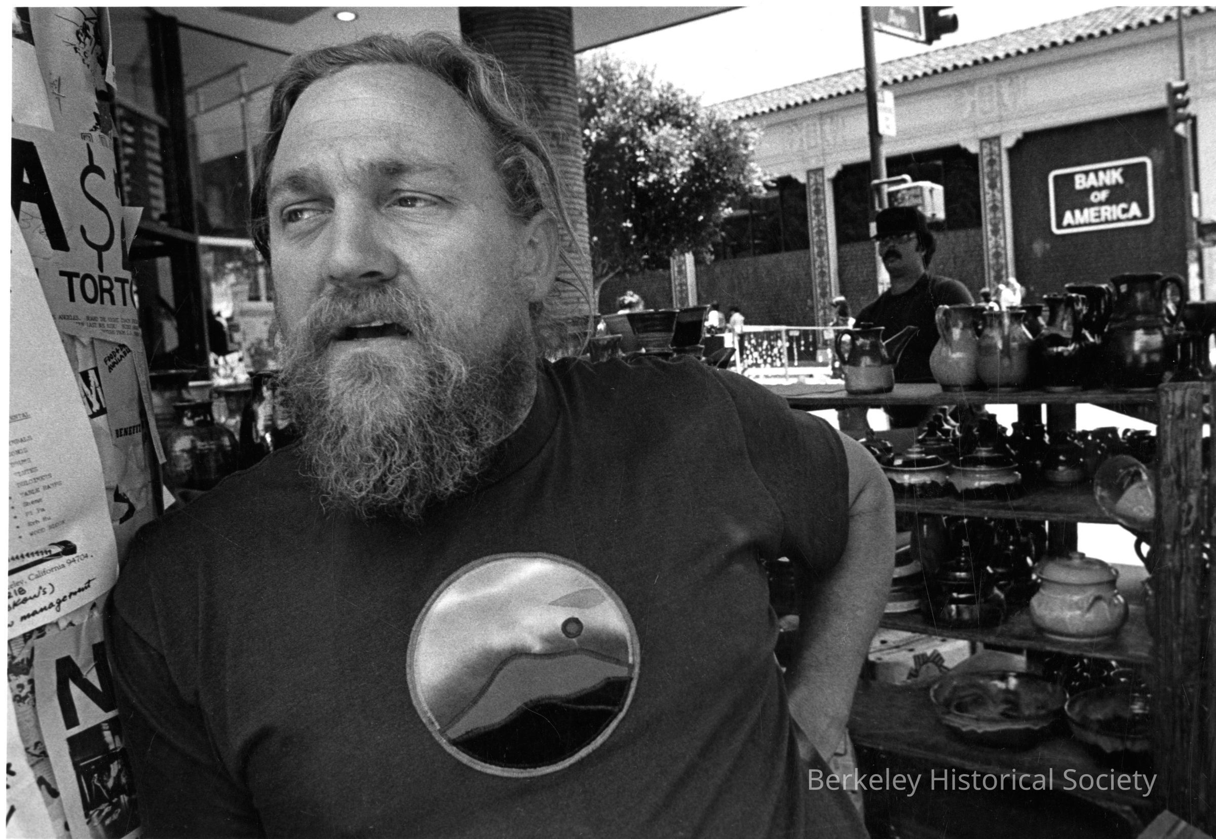 A pottery vendor at his stand on Telegraph Ave. Inscription: "Frances' friend the potter".Other Names and Numbers