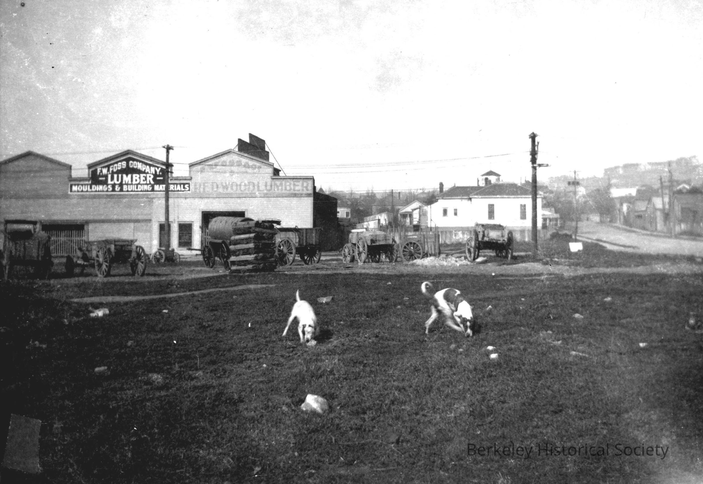 Field, dogs, F.W. Foss Lumber