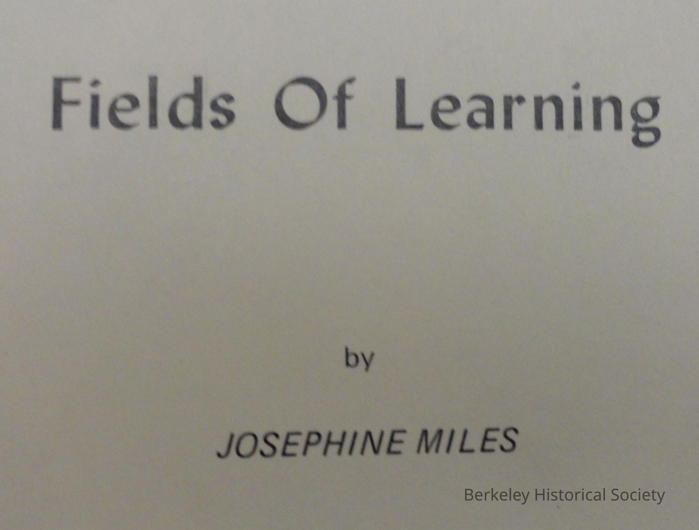 Josephine Miles 25 p. ; 24 cm.